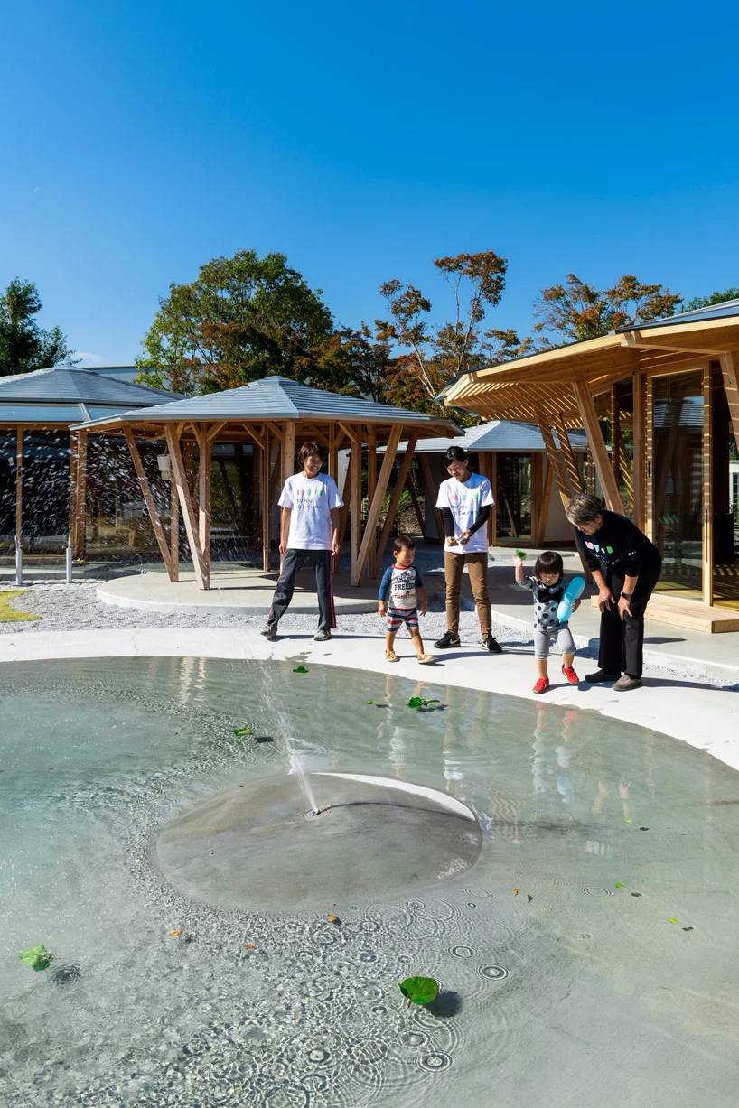 手塚貴晴工作室采用了圓形的平面布局,在建筑中創(chuàng)造出許多優(yōu)勢。首先,房間的形狀在功能使用方面帶來了更高的靈活性;其次圓形的空間讓房間的可視性更加優(yōu)異,使用者能360 度無死角環(huán)顧四周,這一點(diǎn)對于一家幼托學(xué)校而言非常重要。建筑外部的活動區(qū)還有一個圓形水池,只有30厘米深,小孩子可以在里面自由戲水。