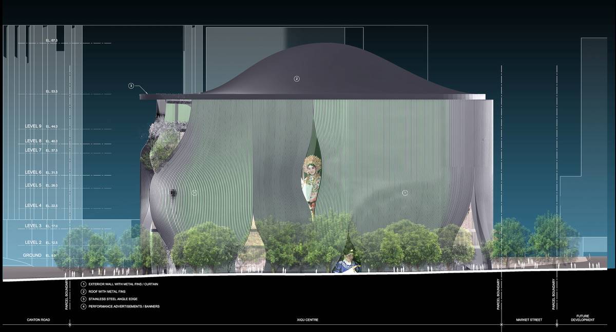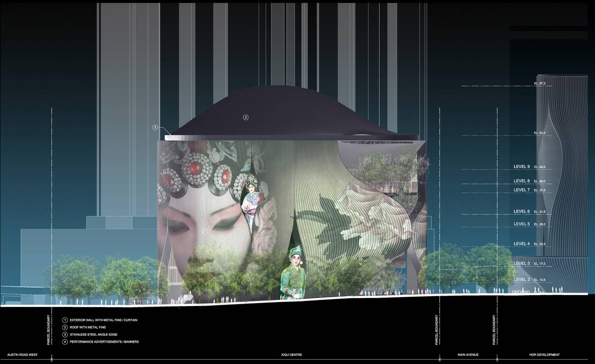 這個(gè)標(biāo)志性的7層表演場(chǎng)地被設(shè)想為一個(gè)文化圣地, 融合了戲劇、藝術(shù)和充滿活力的公共領(lǐng)域, 致力于弘揚(yáng)戲曲的豐富遺產(chǎn)——京劇,以及對(duì)這種獨(dú)特的傳統(tǒng)藝術(shù)形式的生產(chǎn)、教育和研究。
