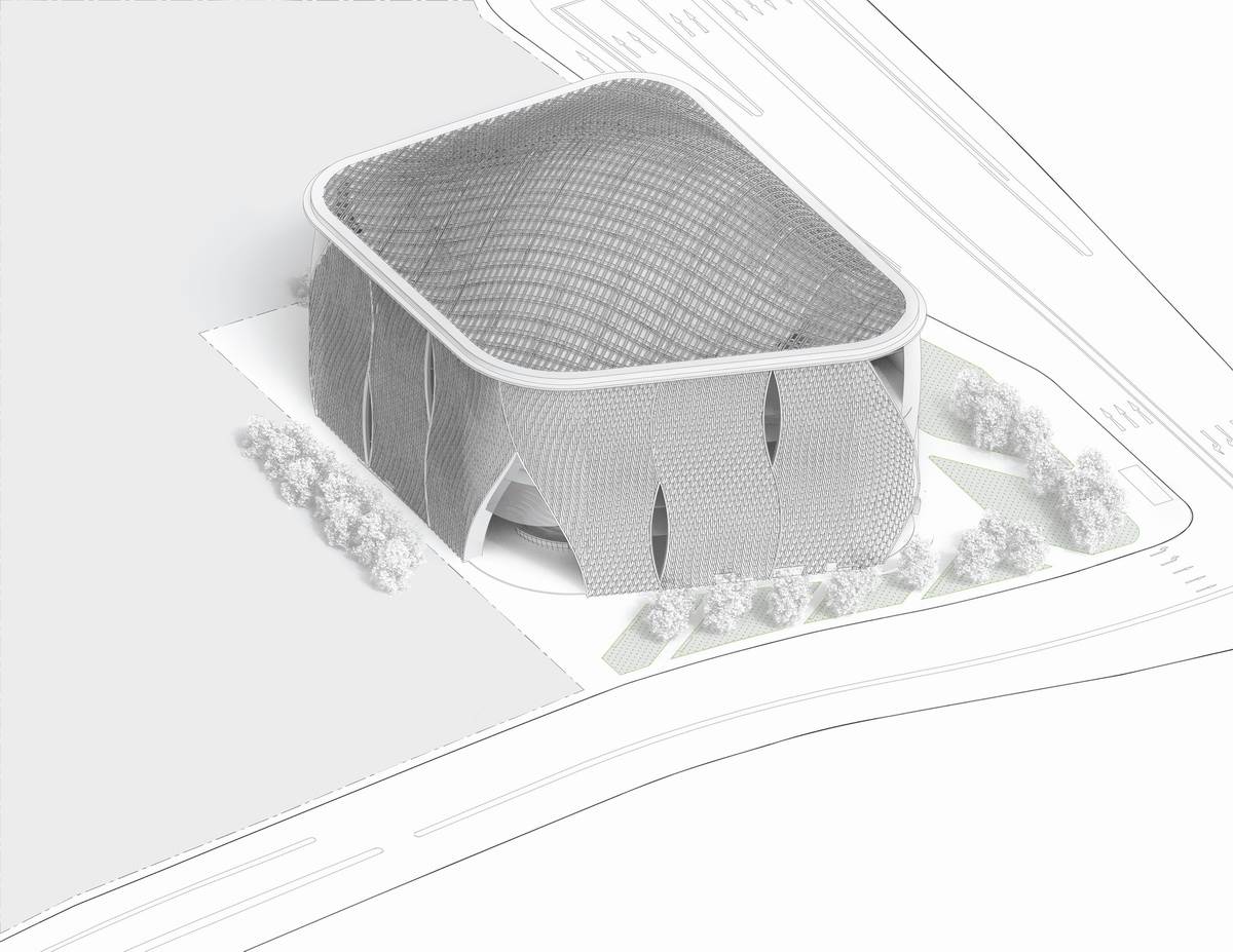 立面的編制金屬板像窗簾一樣在建筑的四個(gè)角落被拉回,將光線射向外部,吸引游客自由進(jìn)出內(nèi)部庭院,享受展覽、攤位和致力于推廣戲曲豐富遺產(chǎn)的工作坊。