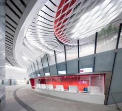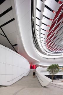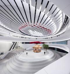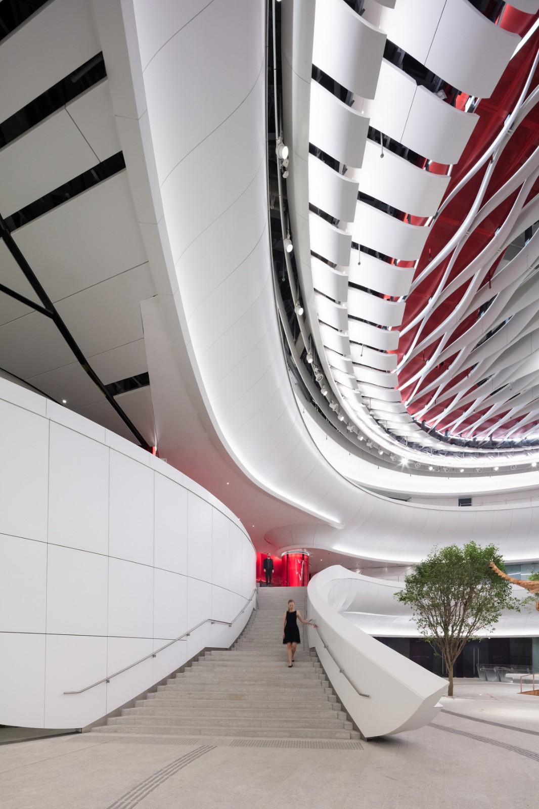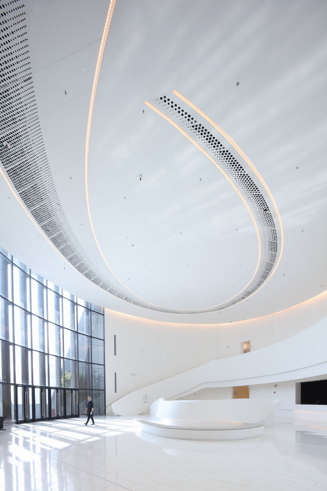 “氣” 的概念貫穿整個(gè)建筑,圍繞為多層圓形中庭而設(shè)計(jì)的曲線路徑、形式和拱形入口。