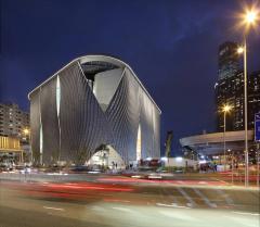 香港戲曲中心是久負(fù)盛名的中國傳統(tǒng)京劇的新家。其戲劇性的曲線立面和經(jīng)過重新詮釋的中國月門形狀象征了通往香港新文化藝術(shù)區(qū)——西九龍文娛藝術(shù)區(qū)的入口。