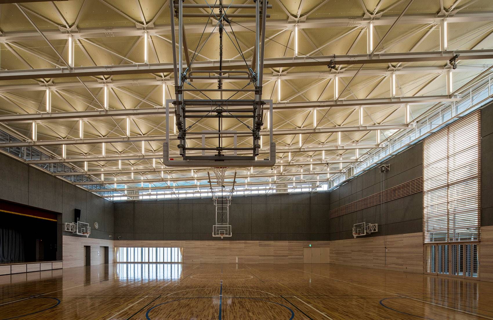 鉾田南小學是由附近七所小學統(tǒng)合而成,為實現(xiàn)「培養(yǎng)貢獻國際社會人才的靈活多用的學習空間」,除普通學生教室外,相關配備有多媒體學習交流中心,戶外教室,料理教室,實驗室,手工藝教室,繪畫室,音樂教室,醫(yī)務室,學生交流室、配餐室,語言教室等綜合功能完備的高標準國際化小學。高標準防災,防震,防犯罪設計,為孩子們打造安全舒心的學習環(huán)境。學校坐落于地勢稍高的小山丘上,室外操場視野寬闊,教師辦公室正對室外操場,在窗前便可觀察操場上學生的狀況。