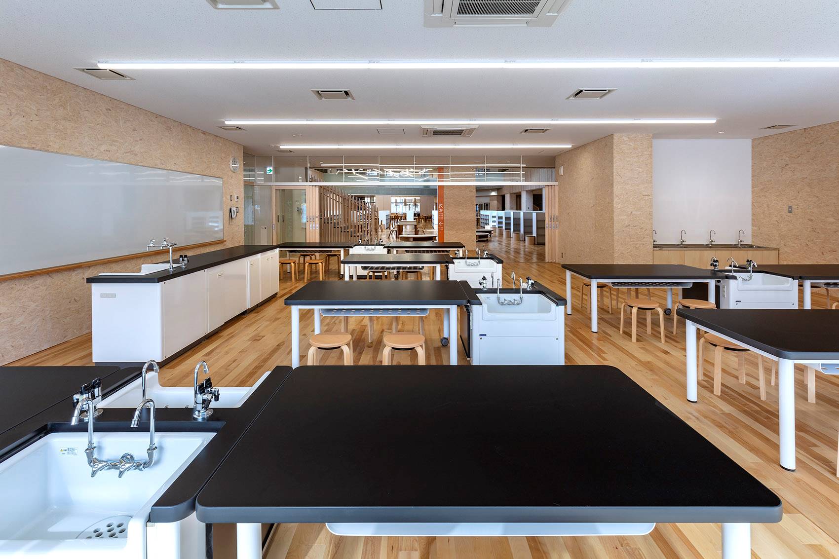 ▼學生實驗室內(nèi)的桌子由設計師專門設計,桌子與水池可分開移動