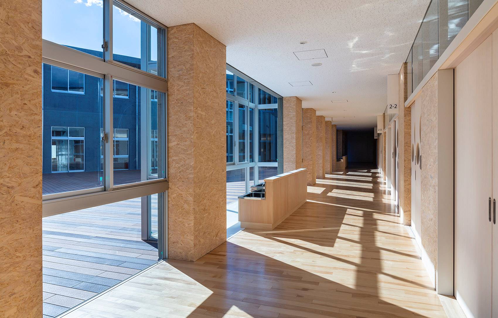 陽光庭院兼室外教室,學生們在此展示,全校學生都可以通過窗子觀看。二樓室外教室,將三,四,五年級通過室外陽臺與戶外教室相連接,促進跨年級同學的交流和溝通。