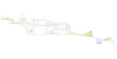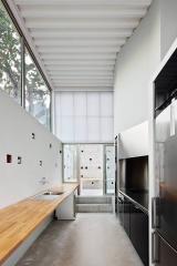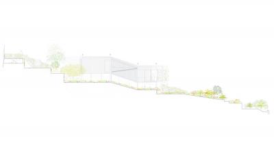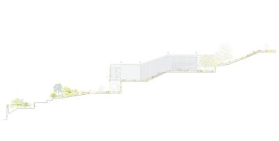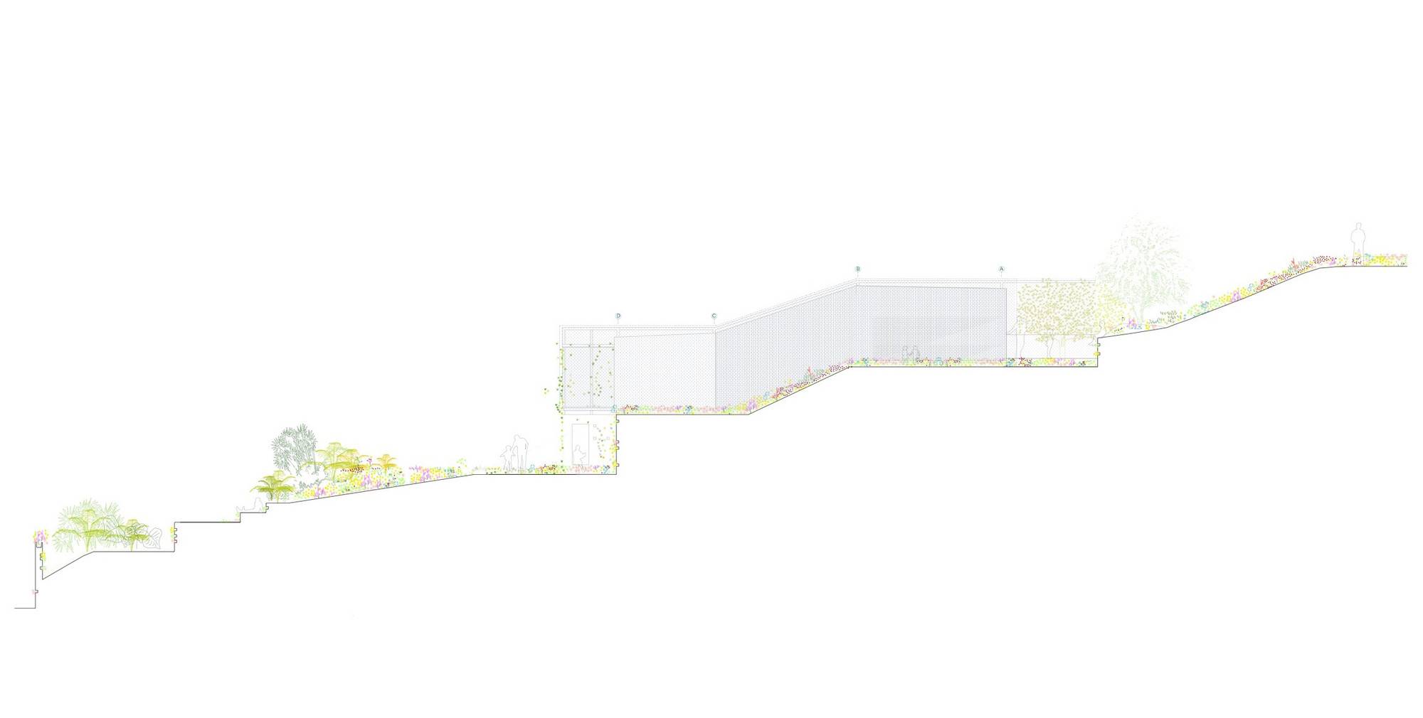 在這個(gè)系統(tǒng)中,這座房子從土地的較大斜坡上建起了一個(gè)大型的游樂(lè)場(chǎng),在這里可以觀賞并包圍房屋景觀,卻難以被街道上人察覺。 在這個(gè)操場(chǎng)上,提供了更加不確定和多功能的生活方式。沒有特定的地點(diǎn)來(lái)開展活動(dòng),而是取決于當(dāng)?shù)厍闆r、氣候和隱私,使項(xiàng)目能夠發(fā)展成為滿足欲望、需求或優(yōu)化的國(guó)內(nèi)事件。 在這個(gè)地方,“遙遠(yuǎn)的桌子”或“魷魚搜索燈”被設(shè)計(jì)為操場(chǎng)互動(dòng)的大型裝置。