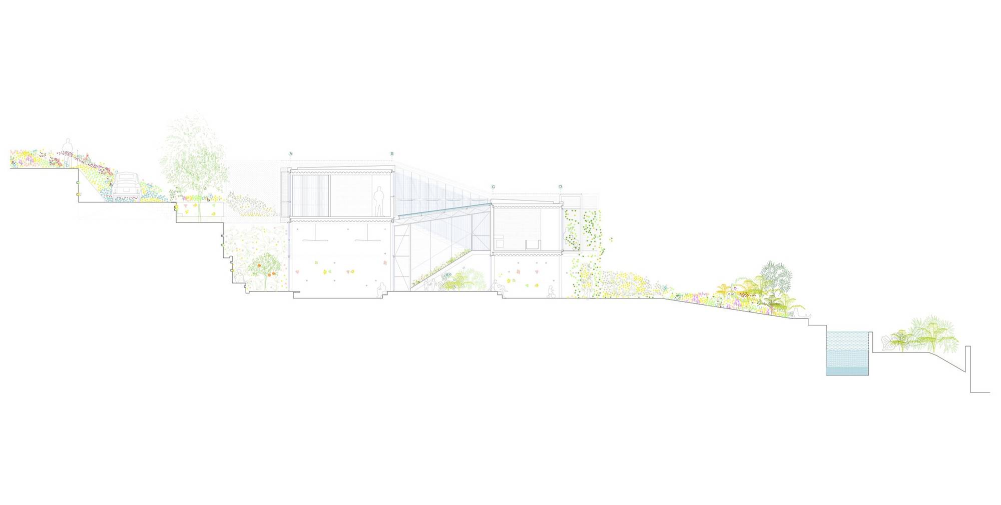 由內(nèi)而外,雙層壁由多孔聚碳酸酯、簡(jiǎn)單的波狀聚碳酸酯過(guò)濾器、互鎖的金屬瓷磚、不同的玻璃,并根據(jù)其兩側(cè)氣候的連續(xù)性制成。農(nóng)用紡織品耗散或積聚輻射。 一個(gè)既開放又封閉的房子??雌饋?lái)是封閉的地方,是氣密的,卻看起來(lái)是開放的。房子有一個(gè)“等待結(jié)構(gòu)”,以備客戶獲得更高的能源效率。氣候符合自然空間。 在城市,公共場(chǎng)所以及房屋中, 我們都是有象征意義、聲音洪亮和寬敞的容器內(nèi)部的建筑師,而這所房子則是一個(gè)有待開發(fā)的幕墻。四季住宅是裸露的,幾乎是一張白紙; 該項(xiàng)目剛剛開始...