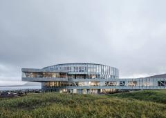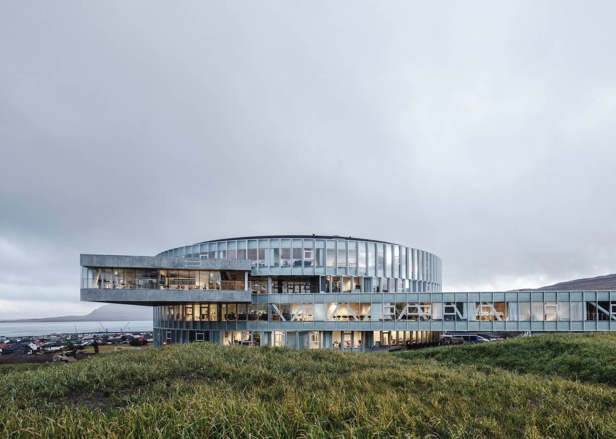 Glasir 位于法羅群島波浪起伏的峽灣上,在那里可以看到首都托爾斯港,還可以欣賞到美麗的大海和湛藍的波濤。該項目希望能夠?qū)⒎_群島體育館、托爾斯港技術(shù)學院和法羅群島商學院合并為一棟大樓,為1750多名學生和教職員工提供便利。