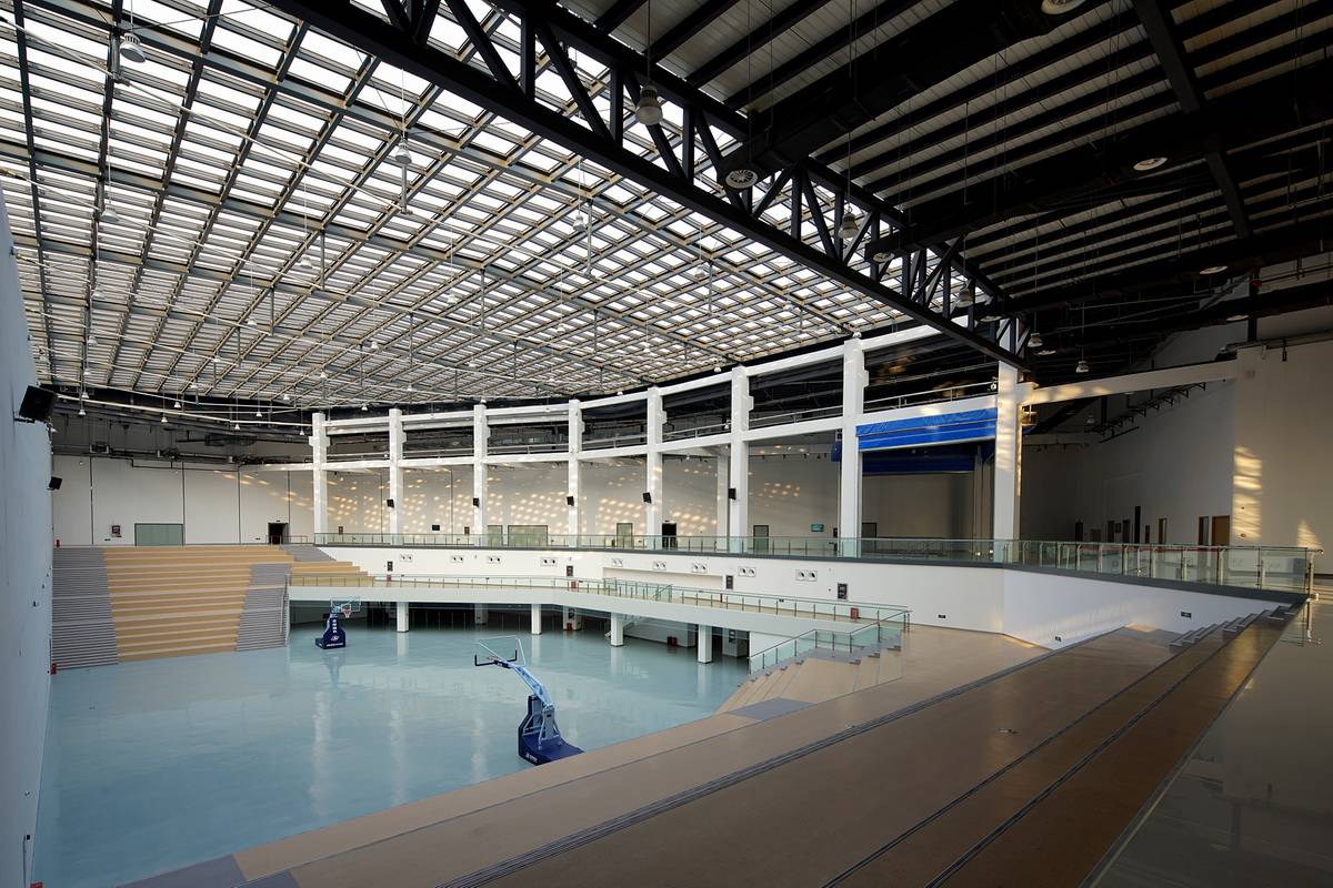 相對(duì)于競(jìng)技體育建筑,群眾體育建筑在中國是一種相對(duì)新的建筑類型,對(duì)于體育功能的定義,理解和空間配置方式提出了新的要求。我們提出了泛體育功能的概念,特點(diǎn)是自由空間,交流空間和復(fù)合空間:主要活動(dòng)如多功能廳,泳池,羽毛球籃球等功能圍繞共享中庭布置,最大限度地鼓勵(lì)不同功能在視覺上和行為上的交流和互動(dòng),充分體現(xiàn)群眾體育活動(dòng)的行為特征。中庭為公共復(fù)合空間,可以組織社區(qū)活動(dòng),小型演出等活動(dòng),平時(shí)可以作為攀巖場(chǎng)地和輪滑場(chǎng)地使用。
