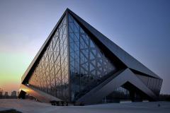 路易斯·康的服務(wù)空間和被服務(wù)空間原型在方案中得到進(jìn)一步發(fā)展,服務(wù)空間的形象展現(xiàn)不再是次要的和輔助的表達(dá),而是得到了清晰表現(xiàn)自我的機(jī)會(huì)。這些形式引入了中國文化的要素,提取了古典園林中折廊的意向,將主體功能與輔助功能,室內(nèi)活動(dòng)與室外活動(dòng),建筑形態(tài)和文化內(nèi)涵融合成一個(gè)有機(jī)的整體。在材料上我們選擇了深灰色鋁板,硬朗的現(xiàn)代感充分展現(xiàn)現(xiàn)代體育建筑的性格:動(dòng)感的能量盒子。