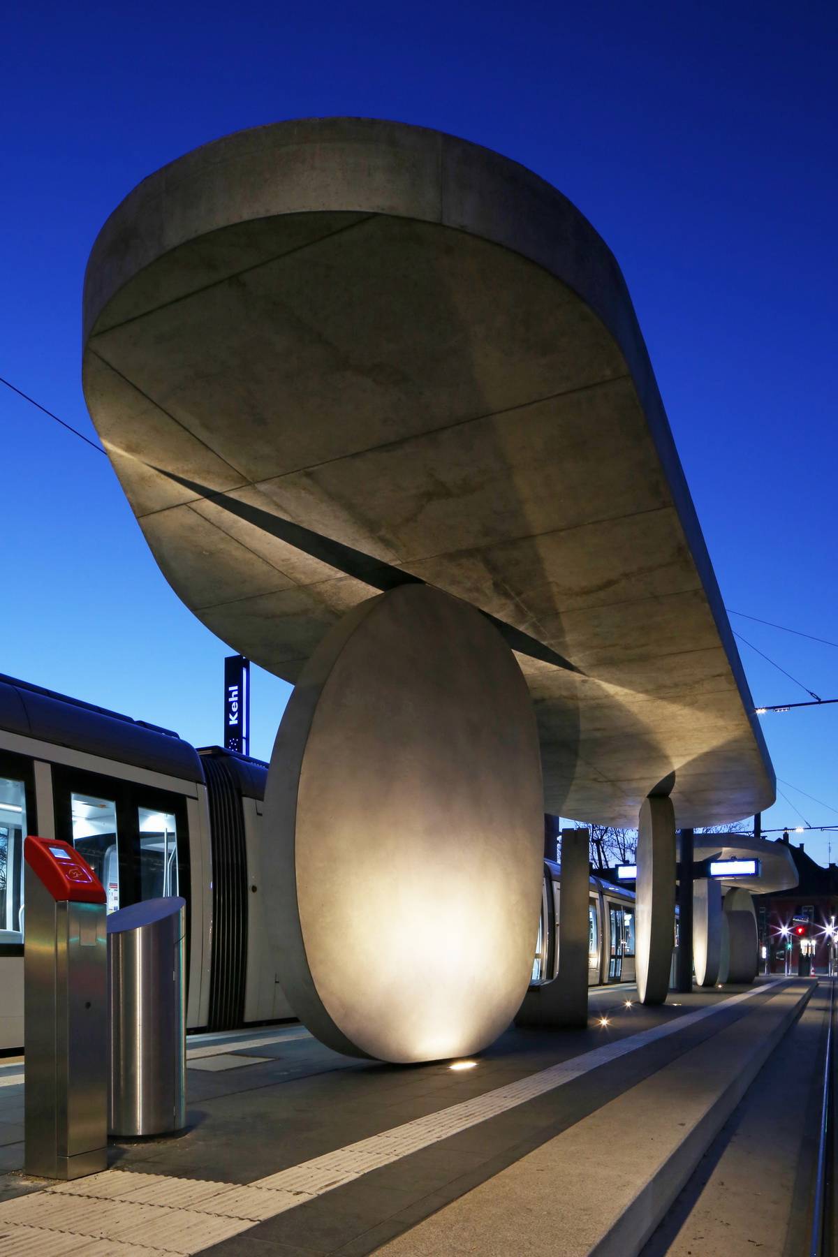 法國(guó)的斯特拉斯堡(Strasbourg)和德國(guó)凱爾(Kehl)之間的新公共交通連接強(qiáng)調(diào)了這些國(guó)家在歐盟中心位置的凝聚力。在法國(guó)一端,由Zaha Hadid設(shè)計(jì)的地景式折疊空間終點(diǎn)車站在2001年建造完成。