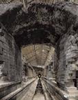 建筑內(nèi)部圍繞兩個倒焰窯及兩套第二代生產(chǎn)線的工業(yè)遺存,根據(jù)博物館建筑展陳設(shè)計人員流線,博物館展陳設(shè)計以瓷工與工廠百年滄桑為明線,以景德鎮(zhèn)陶瓷工業(yè)化發(fā)展與回歸路線及中國工業(yè)變遷史為兩條暗線,展品均使用真實展品和歷史展具。所有展陳設(shè)計在營造氛圍的同時,均達到對工業(yè)遺存零破壞的工藝要求。保留窯坑道內(nèi)的原始狀態(tài),并將隧道下方坑道設(shè)計成展覽空間,用燈光效果強調(diào)了窯內(nèi)原工藝浴火重生的過程(圖3~5)。