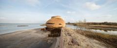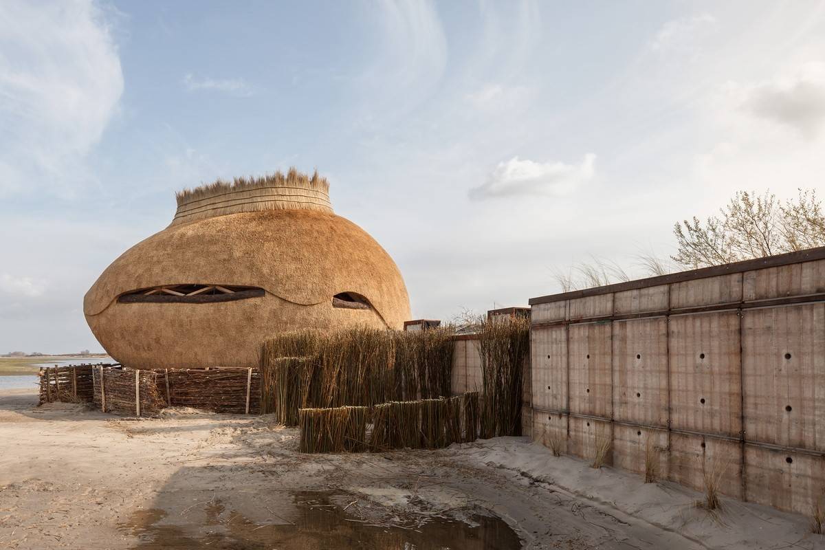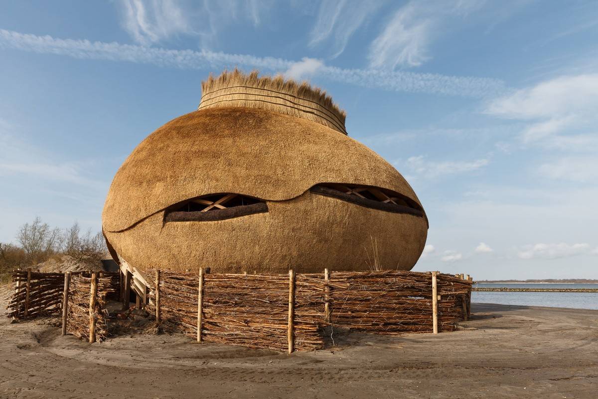Tij是一個(gè)蛋形的鳥類觀測(cè)屋,位于哈靈水道附近的Scheelhoek自然保護(hù)區(qū)。保護(hù)區(qū)沿岸防線的內(nèi)側(cè)是大規(guī)模的蘆葦床,外側(cè)則是一些平坦的沙島。這些島嶼為一些鳥類提供了繁殖和覓食的棲息地,例如普通燕鷗和篦鷺,以及當(dāng)?shù)貥?biāo)志性的白嘴端鳳頭燕鷗等。