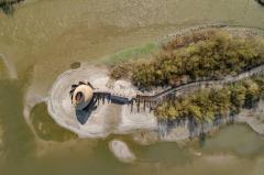 為了避免對(duì)鳥類形成干擾,游覽路線的最后一段被設(shè)計(jì)為隧道,由再利用的系船柱和曾用于制磚業(yè)的紅鐵木板建造而成。隧道的內(nèi)表面被沙子覆蓋,能夠?yàn)檠帔t或涉禽提供棲息環(huán)境,外表面則為崖沙燕提供了筑巢的凹洞?!傍B蛋”位于路線的終點(diǎn),從這里可以觀察到正在孵化的燕鷗以及各類生活在水中和水邊的物種。