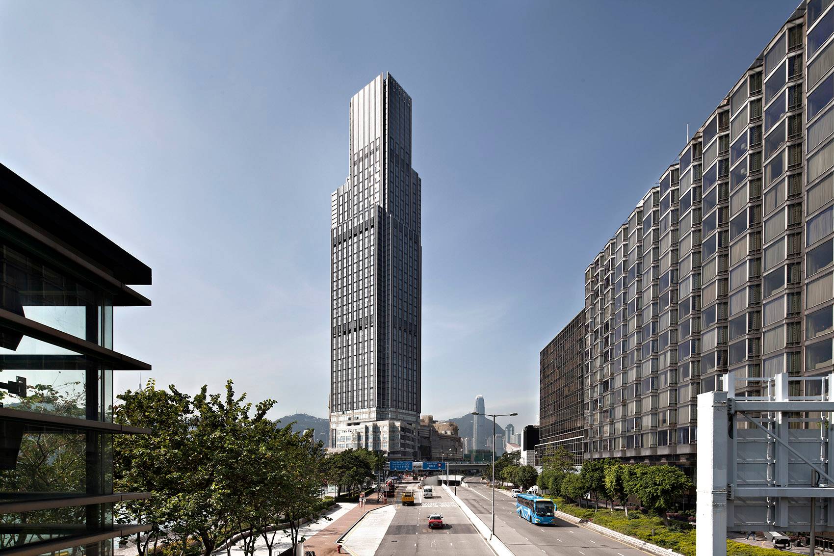 這座256米高的酒店塔樓包括短租酒店公寓、酒店式公寓及精品辦公空間,室內(nèi)由Tony Chi設(shè)計(jì),這一大樓展現(xiàn)了重新煥發(fā)活力的Victoria Dockside濱水區(qū)。塔樓階梯式、不規(guī)則體量代表多種業(yè)態(tài)分區(qū),同時(shí)保持了一致的外部設(shè)計(jì)語(yǔ)言。石柱體現(xiàn)了塔樓的挺拔感,透過(guò)全景玻璃窗,維港以及九龍嶺美景一覽無(wú)余。