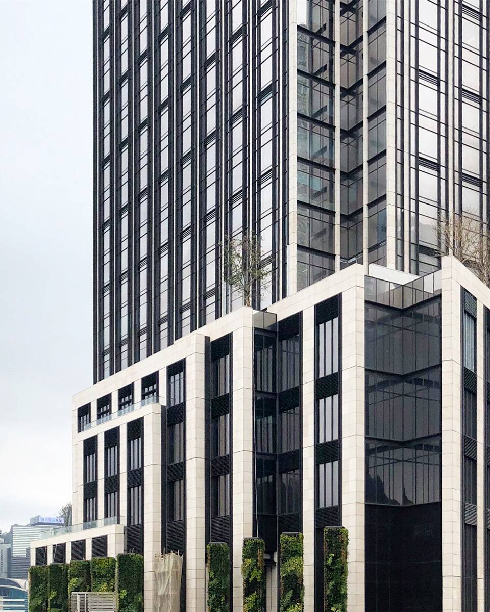 ▼酒店外觀,高聳的塔樓突出了香港令人印象深刻的垂直感