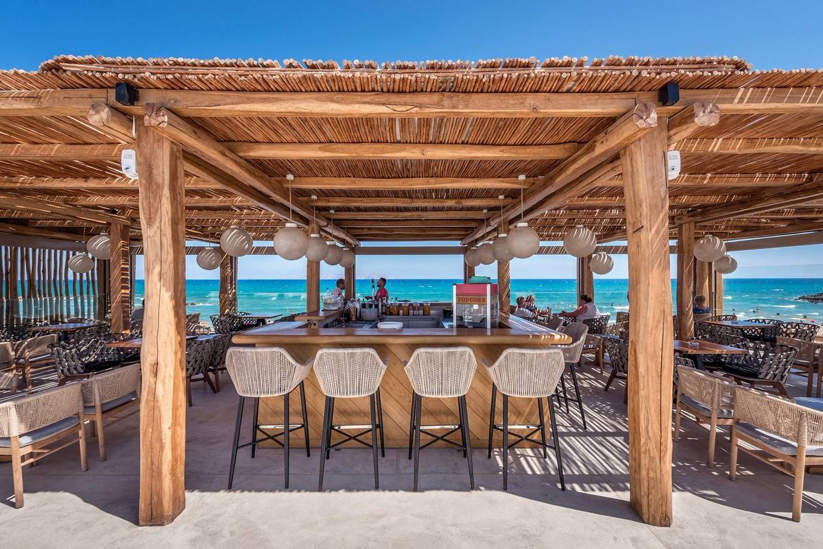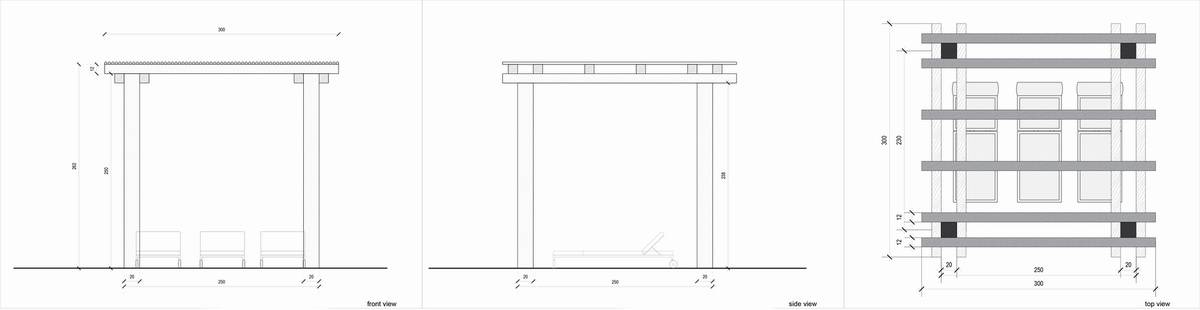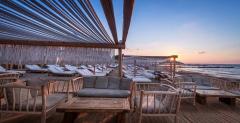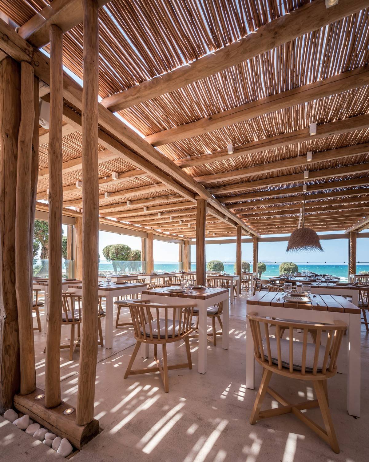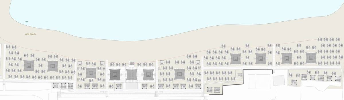 海灘分為五個區(qū)域,包括室外沙發(fā)床,躺椅,座椅區(qū),以及涼棚。天然材料是建筑與景觀能形成對話關(guān)系的首要元素。