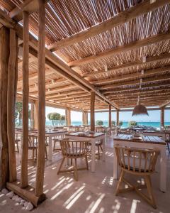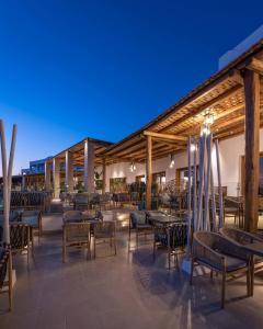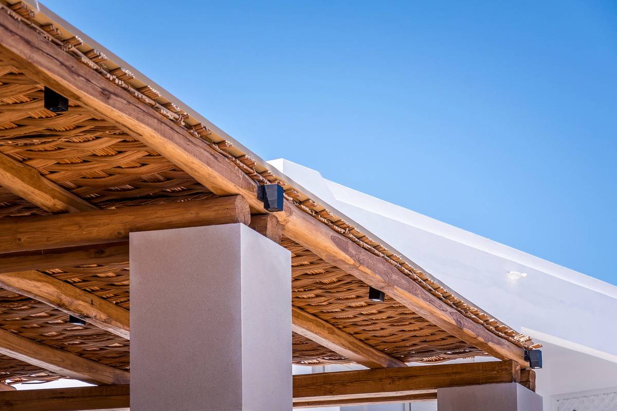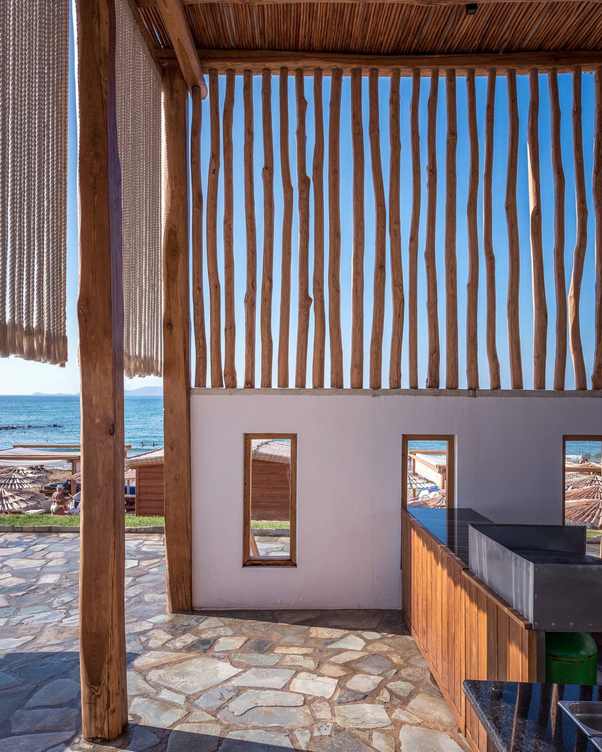 Elastic建筑事務(wù)所的目標(biāo)是將酒店打造成一個高度美觀,賓至如歸的地方。建筑的設(shè)計風(fēng)格簡潔,并且對決定功能空間的希臘元素進(jìn)行了強(qiáng)調(diào)。光與影的游戲,一覽無余的美景,天然的本土材料,這些都是設(shè)計中考慮的關(guān)鍵元素。穿過柳條涼棚投射下來的陰影,突出了建筑的紋理,由此打造出一個不斷變化的環(huán)境??偟膩碚f,一個現(xiàn)代化的度假村是根據(jù)功能需求與自然環(huán)境相結(jié)合而形成的。