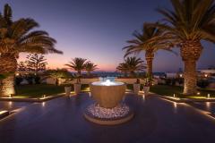 在中央建筑與主要泳池之間有一個噴泉。泳池中用到的大理石也被用在中央建筑的周圍所有區(qū)域,作為統(tǒng)一空間,自然延續(xù)的設(shè)計手法。抬高的入口空間,中央噴泉和露天壁爐是該度假村的標(biāo)志性元素。