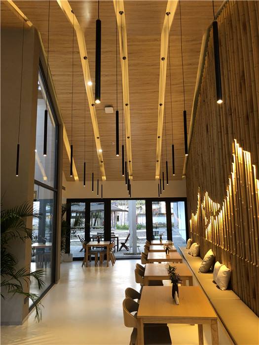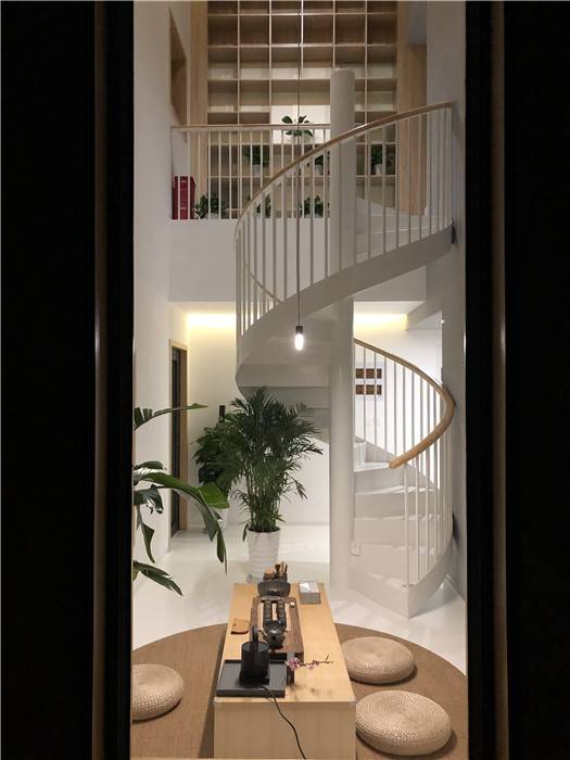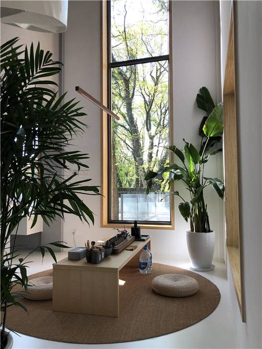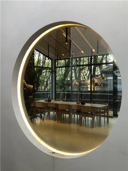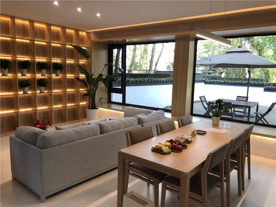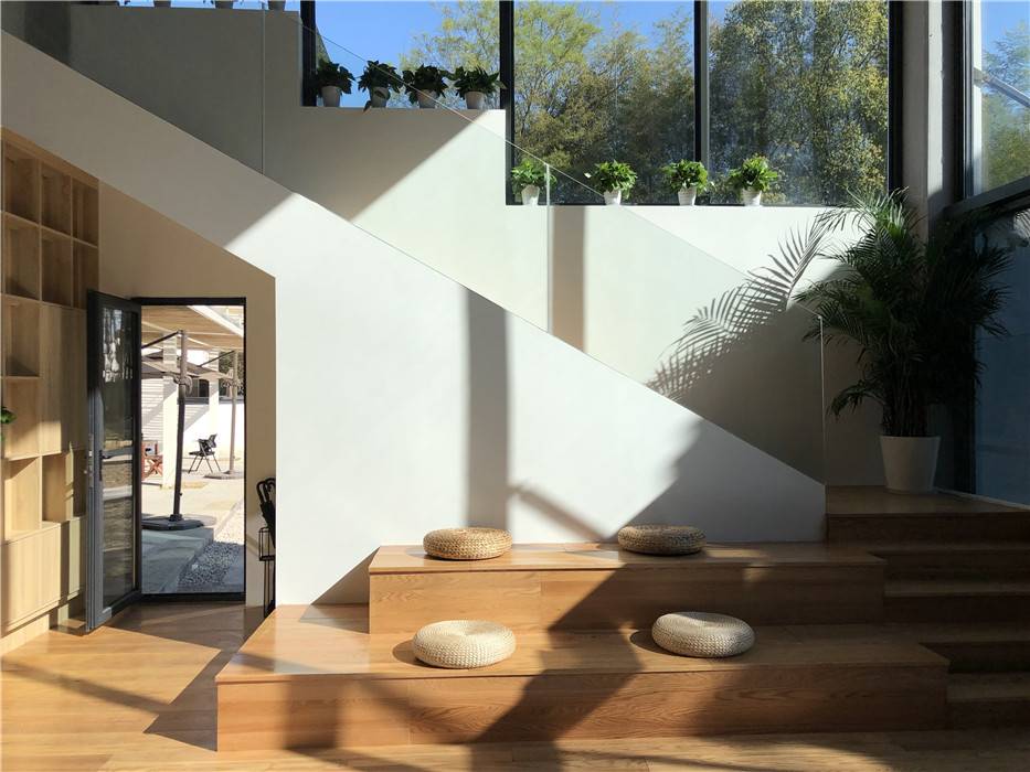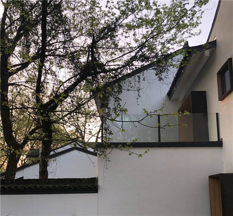 各建筑內(nèi)部設(shè)置私密的獨(dú)立庭院,營造幽靜的傳統(tǒng)民居空間氛圍;整個建筑群組又圍合出共享庭院,滿足了交流空間的需求;結(jié)合老墻設(shè)置院墻,營造靜謐的環(huán)境,并將原有楓楊林及竹林景觀納入院落空間,聯(lián)結(jié)建筑群的小徑曲折穿行林中,展現(xiàn)風(fēng)雅的園林意境。
