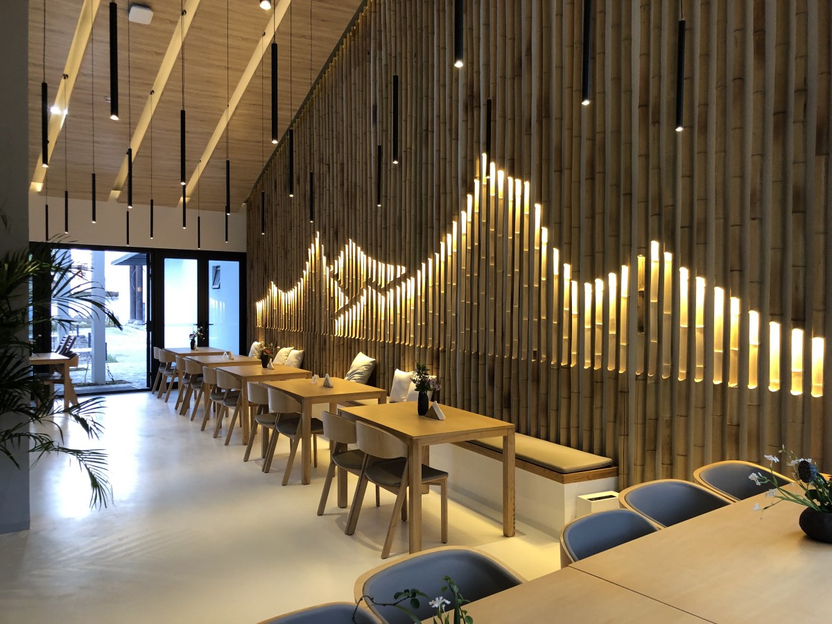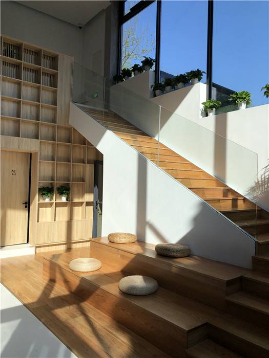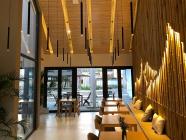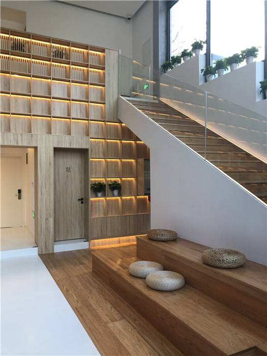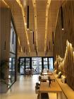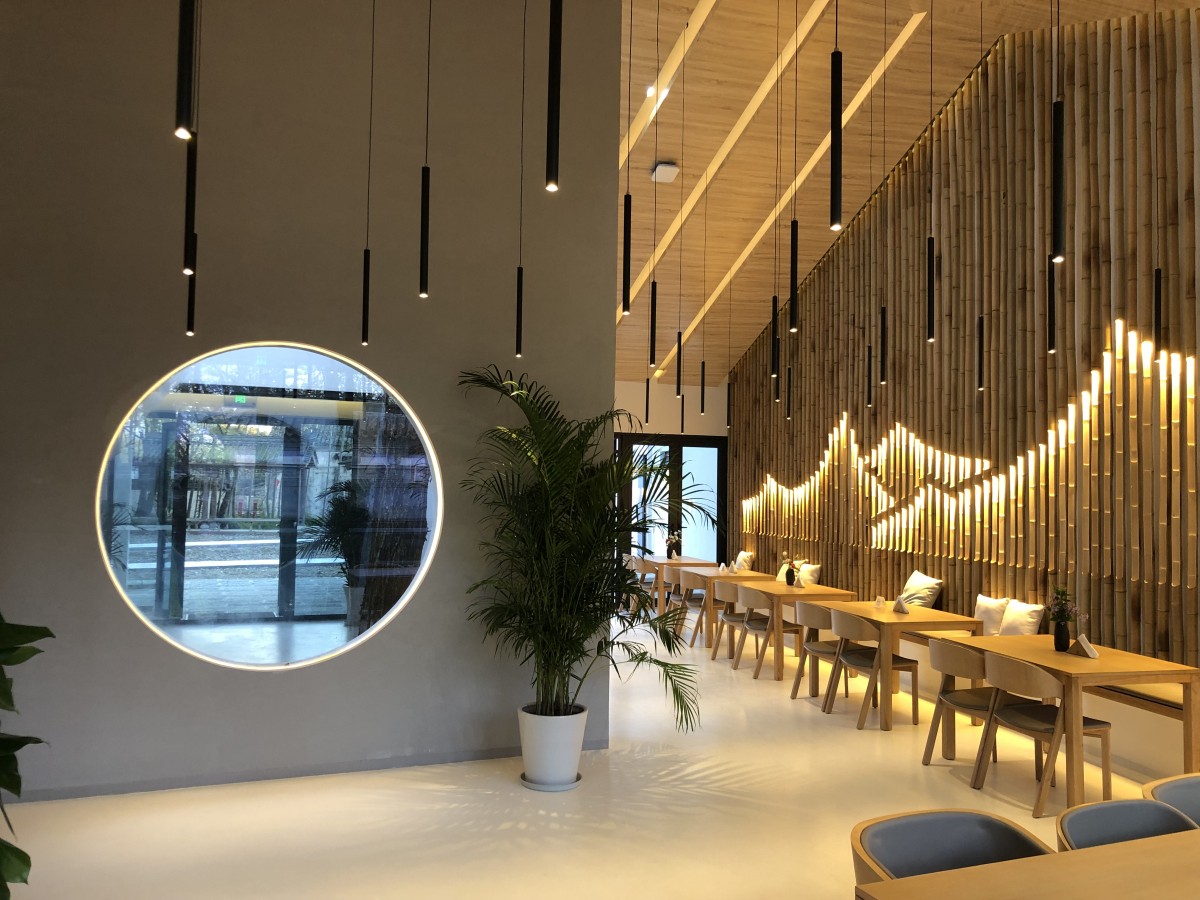 空間體驗上延續(xù)望山生活內(nèi)涵,利用建筑本身特征,保留使用功能痕跡進(jìn)行設(shè)計,去裝飾化而不特意仿古。弱化原有結(jié)構(gòu)不利影響,引入周邊楓楊林與豐樂河優(yōu)勢資源。公共區(qū)突出文化特色,客房區(qū)突出景觀特征。整體采用灰白色系材質(zhì),以面圍合空間,木質(zhì)機(jī)理強(qiáng)化主要空間。合:古徽州建筑材料與現(xiàn)狀建筑材料提取整合;強(qiáng)化空間幾何體量,采用極簡設(shè)計路線,空間整合。溶:軟裝溶入硬裝;空間溶入景觀,室內(nèi)布局圍繞景觀展開。藏:利用凹槽藏匿燈具及零散物品。