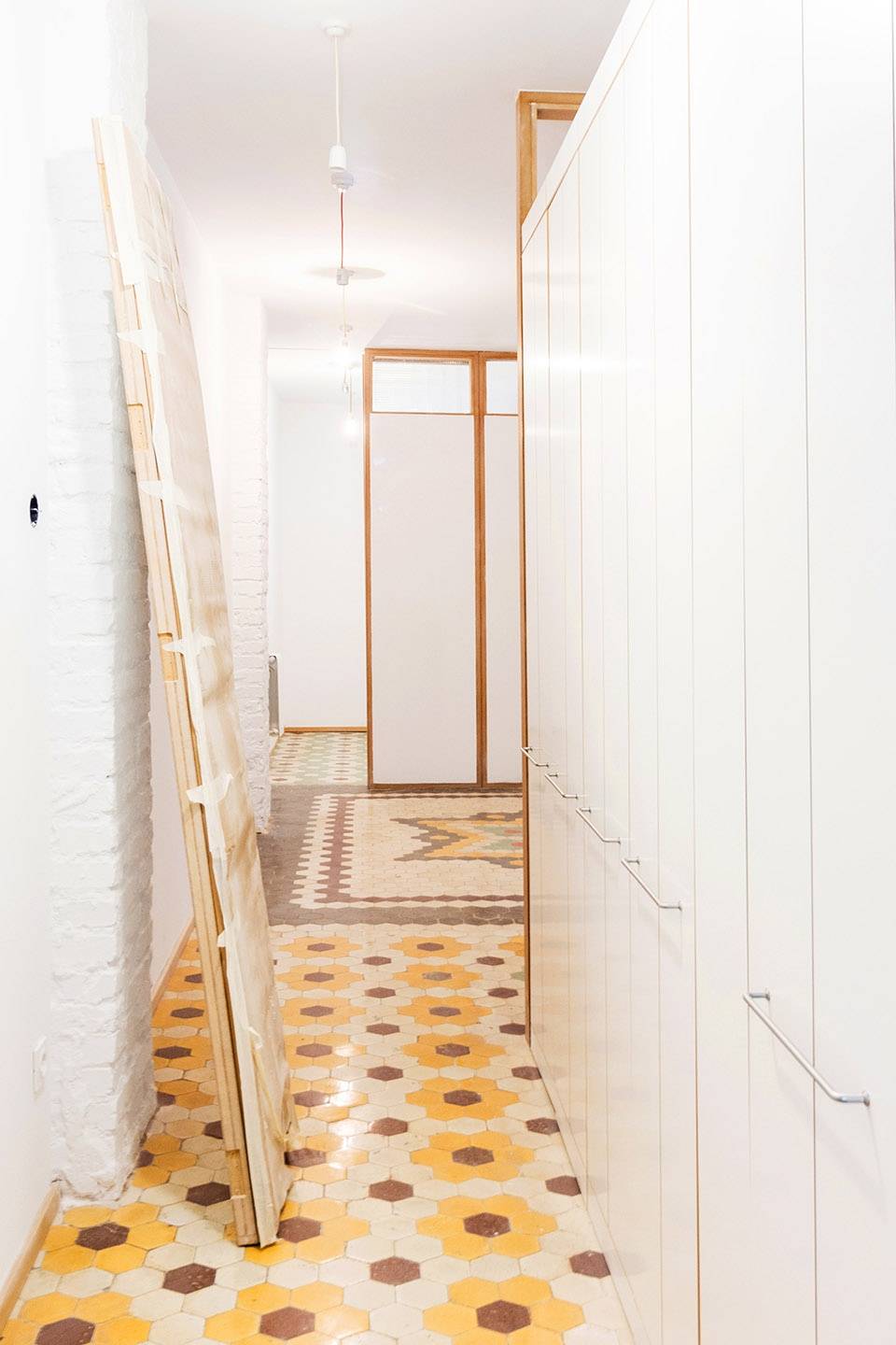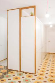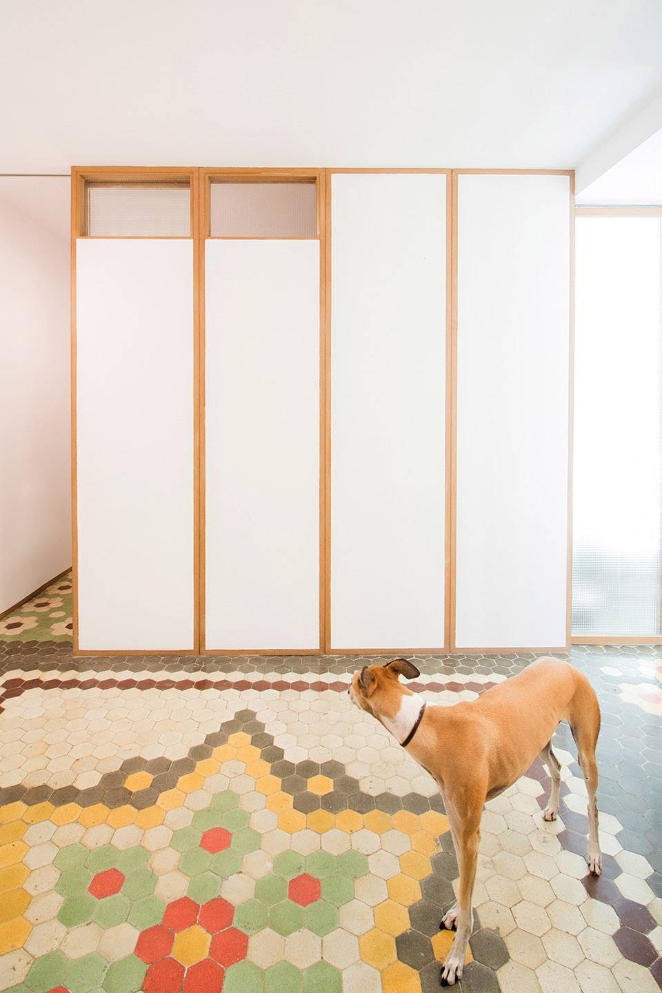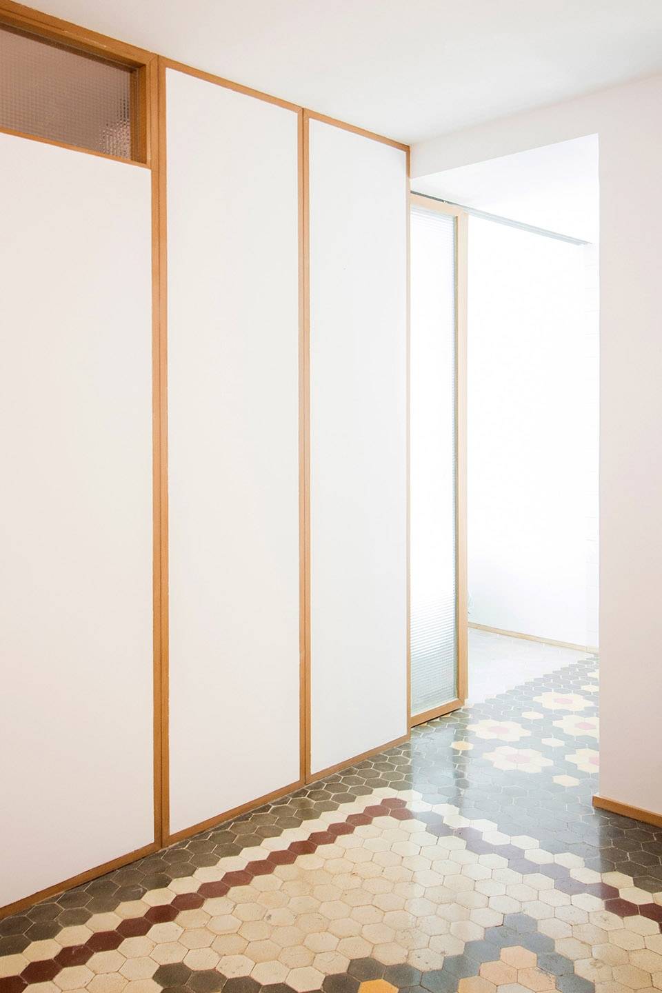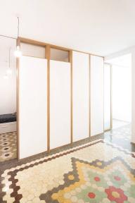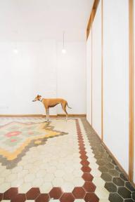 本公寓更新改造項(xiàng)目位于一座建于20世紀(jì)20年代的建筑內(nèi),翻新后的室內(nèi)空間被分為了兩個(gè)基本區(qū)域:一個(gè)是原先液壓式六角形馬賽克磚地板的修復(fù)區(qū)(即公共區(qū)),這里遍布著豐富的幾何圖形和顏色;另一個(gè)則是以光線和經(jīng)濟(jì)性為決定性因素的兩居室的生活區(qū)。