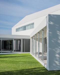 此外,小屋還使用了電動百葉卷簾系統(tǒng),因此可以完全遮蔽日間區(qū)域和SPA區(qū)域。此外,墻壁和天花板采用整體技術(shù)制造,屋頂桁架為木結(jié)構(gòu)。墻面飾面使用了STO石膏,即白色的MILANO丙烯酸填料。屋頂覆蓋物是白色TPO FIRESTONE膜。室內(nèi)空間主要為白色,地板使用白色環(huán)氧樹脂。