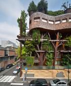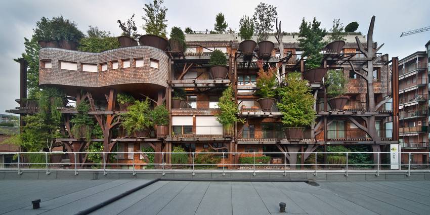 一棟新的公寓大樓在意大利都靈市生了根。這棟由鋼結(jié)構(gòu)支撐的大樓看上去仿佛一座森林,樹木在異形的陽臺(tái)上扎根,池塘從建筑基腳的縫中穿過,還有蔥蔥郁郁的花園覆蓋著屋頂。整棟大樓就像一座真真切切的森林,里面還藏有孩子們夢寐以求的樹屋。