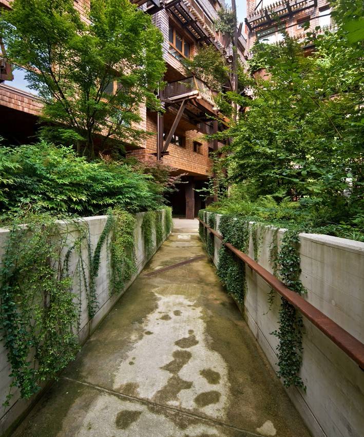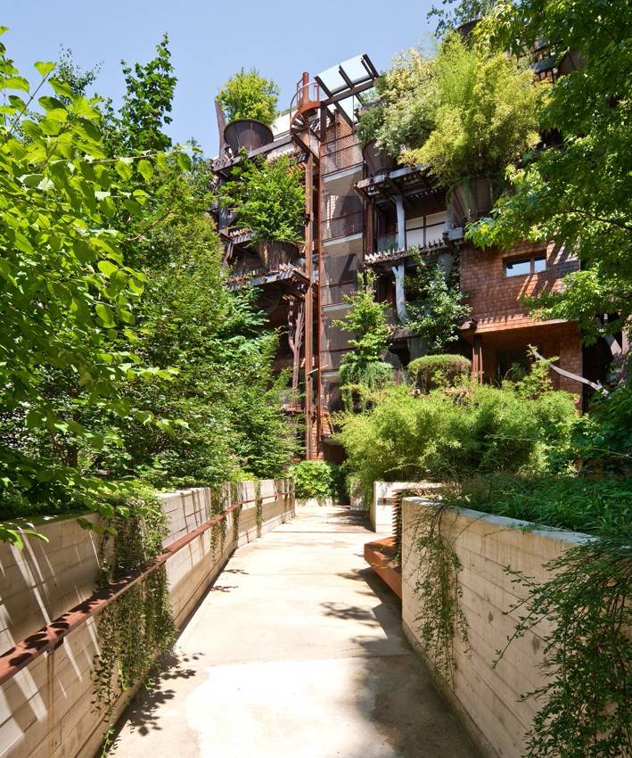 綠色,在這里隨處可見,卻又形態(tài)迥異:陽臺(tái)上的大型花盆,庭院,綠植墻,以及閣樓前方的屋頂花園。