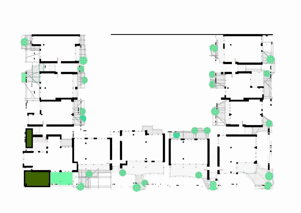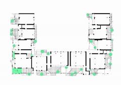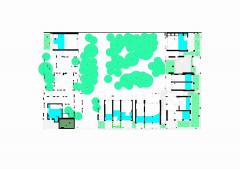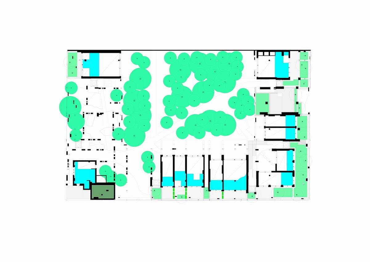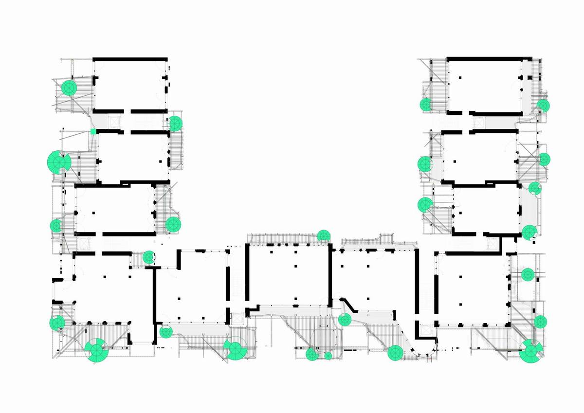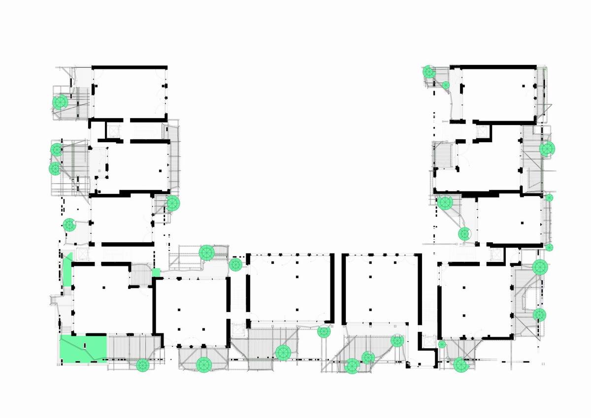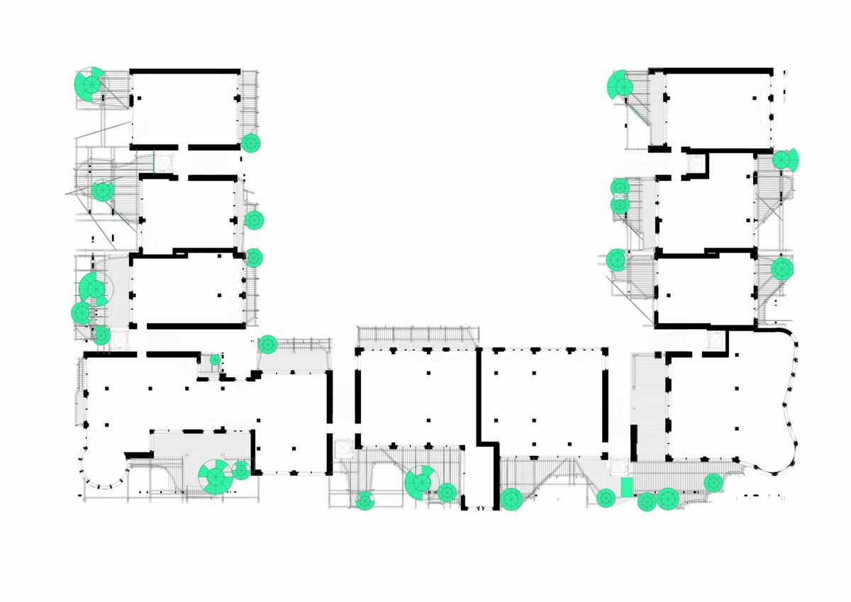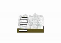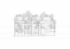 該項(xiàng)目的初衷是通過建造一棟住宅來彌補(bǔ)該街區(qū)街景所缺乏的統(tǒng)一性和多樣性。該項(xiàng)目不僅需要建造連續(xù)的外立面來全方位覆蓋整個(gè)街區(qū)的外圍,也同時(shí)要為建筑內(nèi)部的居住空間和外界的街道制造連接。該項(xiàng)目希望將建筑內(nèi)外過渡的區(qū)域設(shè)計(jì)得具有流動(dòng)性且平穩(wěn),這可以使整個(gè)環(huán)境變得柔和,當(dāng)人們穿過通道時(shí)便能是愉悅的。有針對性地使用綠植和建筑材料增強(qiáng)了過渡區(qū)域平穩(wěn)但多變的空間感,從而創(chuàng)造了一種緊湊且獨(dú)特,而又通透、易變、愉悅的建筑結(jié)構(gòu)。