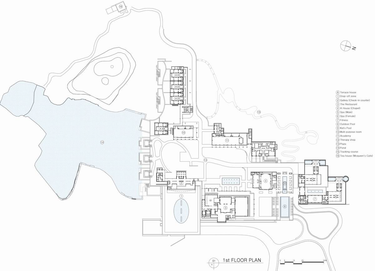 除了呈現(xiàn)一種新的生活方式之外,建筑師還為來到首爾 Ananti 度假村的人設計了一些獨特的空間序列。梯田式建筑中的間隔使得視線可以穿過景觀,在這些空間中,建筑師安排了多種活動。同時,這個項目還投資引進了環(huán)保設施和能源系統(tǒng),建設與自然和諧的環(huán)境友好型建筑。