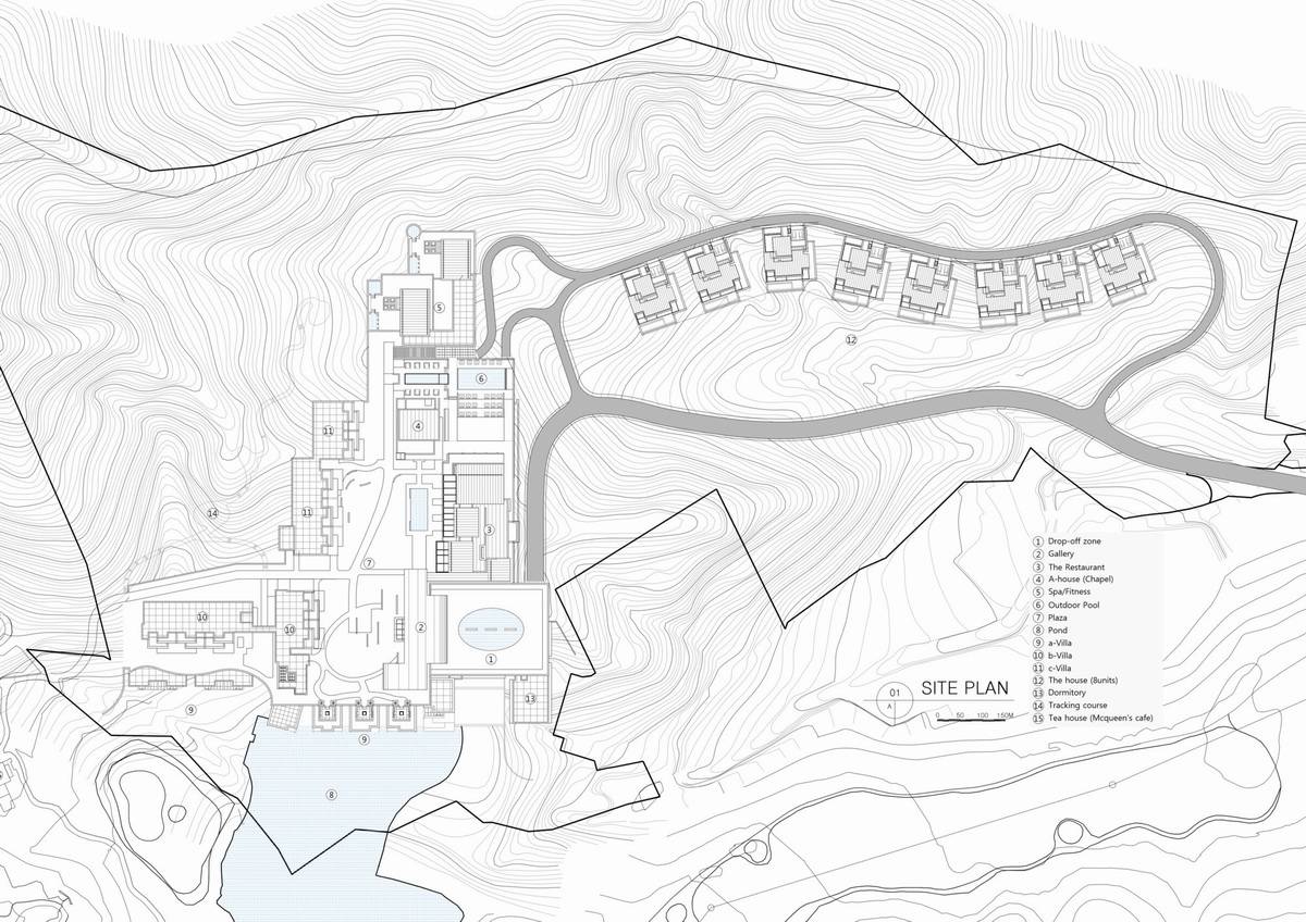 Ananti 首爾度假村位于京畿道加平,毗鄰首爾 Ananti 俱樂部。公寓坐落于一個有100年歷史的松林密布區(qū)域。建筑師注重利用場地中斜坡的高度,在尊重自然的同時適應任務書所提出的要求。為了使斜坡上的景觀效益最大化,建筑師在2.4米的退臺處配合地形的條件設計了大量梯田式建筑,并確保每個單元都與整個建筑群的規(guī)模相協(xié)調(diào)。