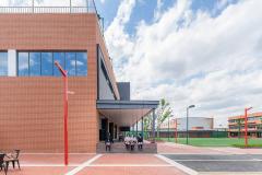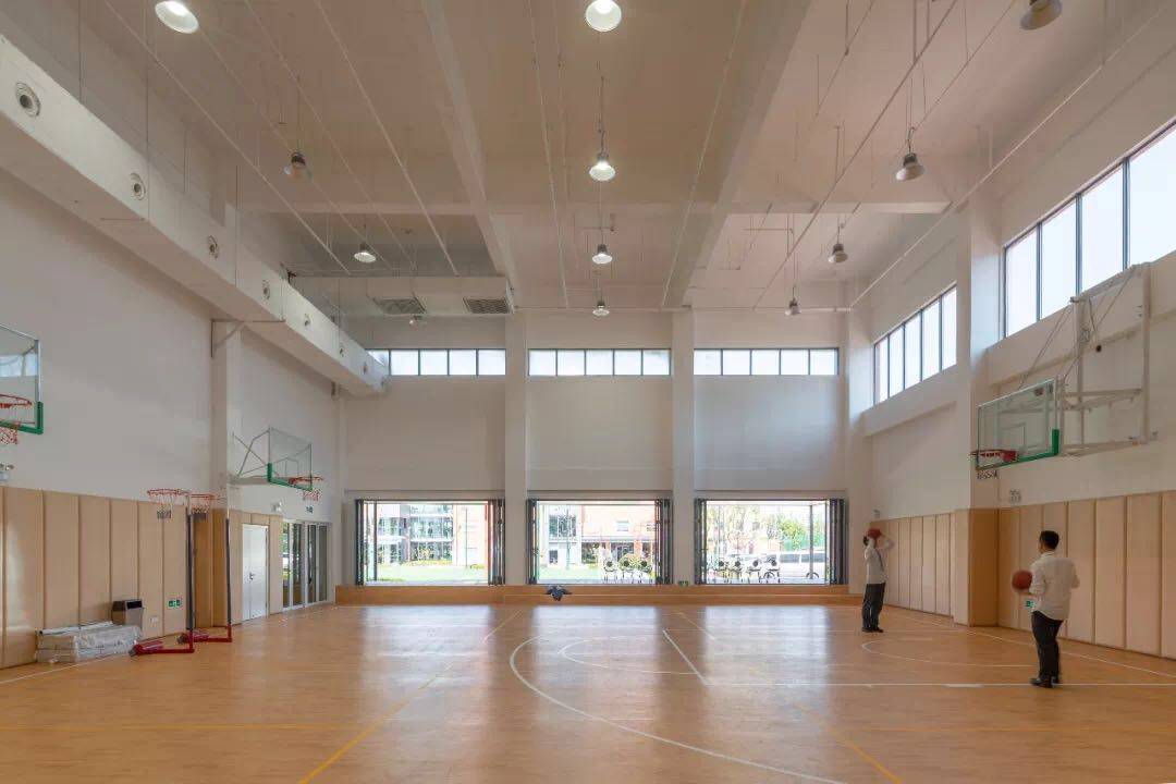 行政樓和教學(xué)樓外的靠著大球場(chǎng)的地方提供了戶(hù)外露天的座位以供學(xué)生在外午餐休憩,或者觀看比賽。科學(xué)藝術(shù)樓內(nèi)的室內(nèi)運(yùn)動(dòng)場(chǎng)的外立面做了可展開(kāi)的移動(dòng)隔斷, 增加了空間利用的靈活性。 不但可以滿(mǎn)足大型活動(dòng)的空間需求,給予充足的自然光線,而且給學(xué)生觀看室內(nèi)外比賽的時(shí)候提供更多的選擇。 餐廳2樓煙囪的露天空間可以俯瞰整個(gè)校園,提供給學(xué)生用來(lái)舉辦一些特別活動(dòng),比如晚上的燒烤派對(duì),音樂(lè)派對(duì)。