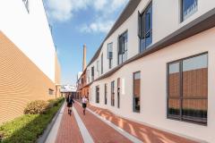 整個(gè)校區(qū)里面主要有5座大樓組成,從入口A棟行政大樓參考英國(guó)來(lái)克頓安妮皇后樓的特色,到邊上包括圖書(shū)館學(xué)院風(fēng)格的教學(xué)大樓B棟; 然后通過(guò)風(fēng)雨連廊進(jìn)入到高度透明的科學(xué)藝術(shù)大樓C棟,到校園深處富有玩味立面的宿舍和餐廳大樓D和E棟; 雖然各有其建筑語(yǔ)言,但風(fēng)格上卻維持一致以保證全校園的整體性。