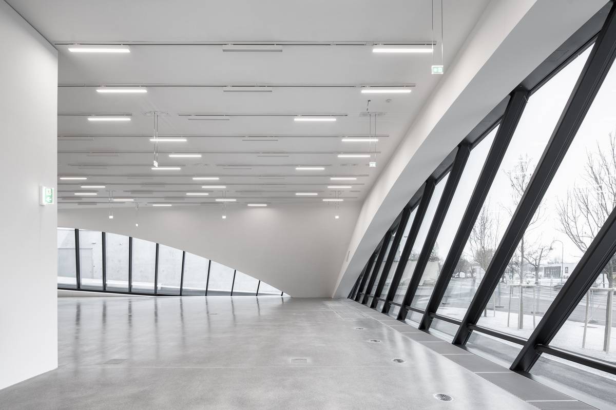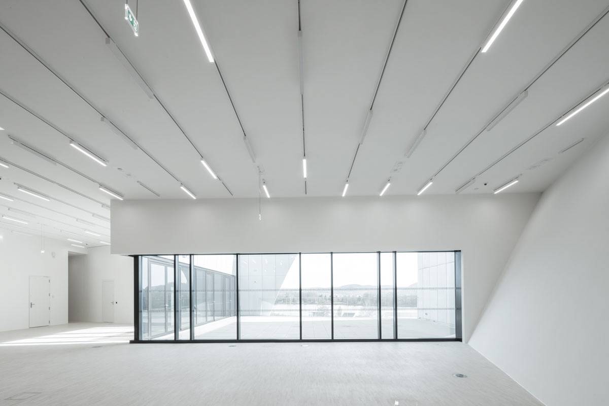 設(shè)計(jì)團(tuán)隊(duì)與經(jīng)驗(yàn)豐富的博物館團(tuán)隊(duì)和著名的博物館策劃人共同開發(fā)了一套用于展示圖像的原始?jí)Ρ谙到y(tǒng)。藝術(shù)將征服這些內(nèi)部空間,并與感覺巨大和無拘無束的東西聯(lián)系起來,就像你走在某個(gè)巨大生物的肚子里。這座州立美術(shù)館就像是一個(gè)外殼上環(huán)繞著扭曲的全息圖像的幾何體量。一邊是對(duì)齊的,另一邊則是一個(gè)懸挑結(jié)構(gòu)。根據(jù)角度的不同,表面似乎會(huì)發(fā)生扭曲 — 靜止圖像中能看到運(yùn)動(dòng)圖像,并在觀眾的運(yùn)動(dòng)中被重新激活。有了可能性,就有了真實(shí)感。