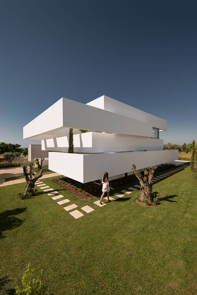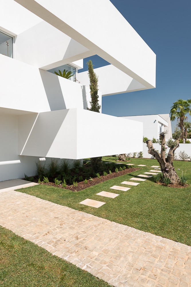 五個白色平臺堆疊起來,使得我們能夠垂直移動并且體驗周邊景觀的不同尺度。平臺間的空腔為人們和植被生長創(chuàng)造了空間,空腔一直要么隱藏著要么裸露著,將內部花園或外部房屋的景象定形。