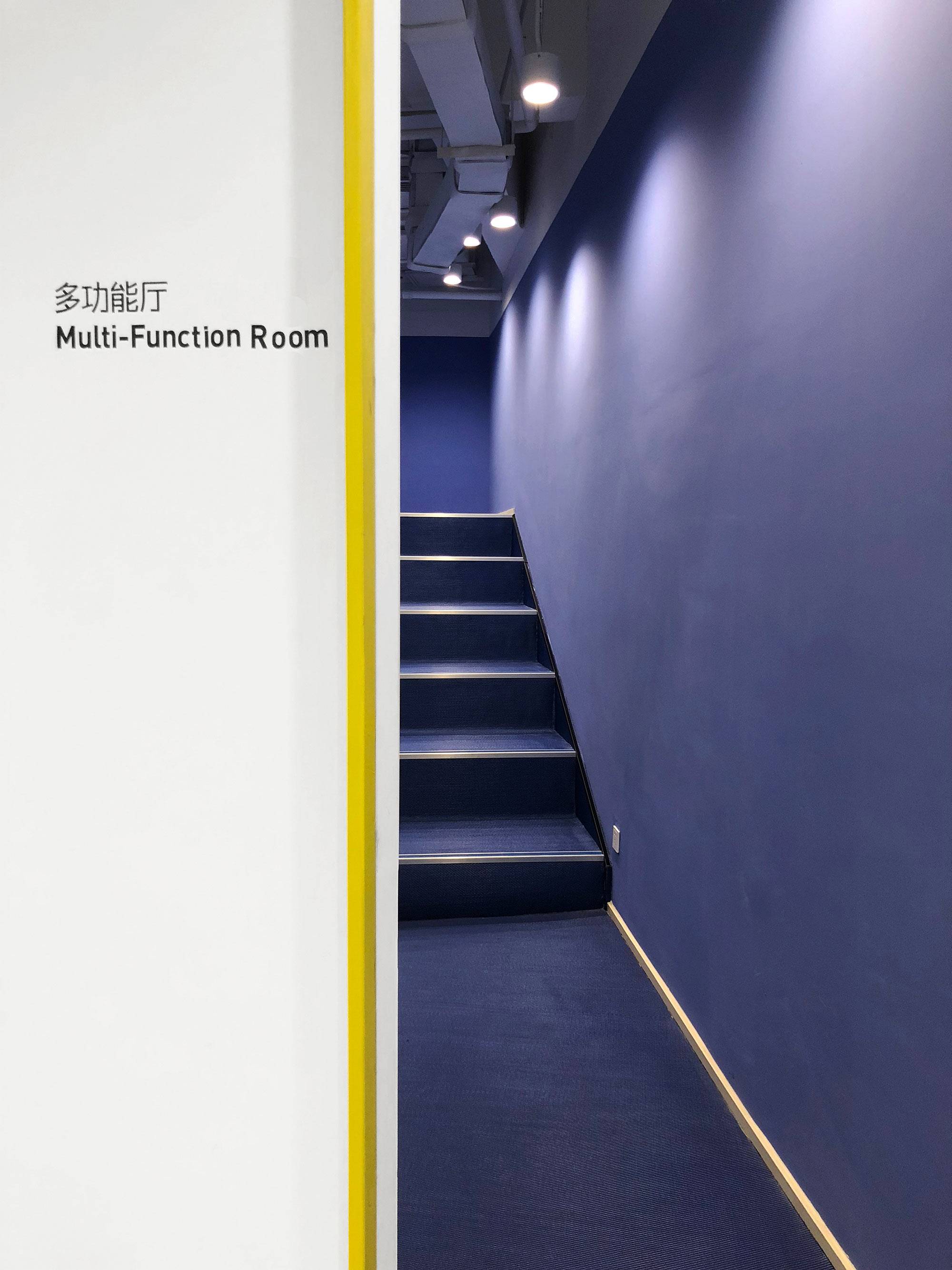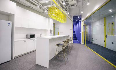 共享站以獨立空間呈現(xiàn),在每一層將辦公、公寓、商業(yè)等業(yè)態(tài)的交界處做了富于彈性的設(shè)計處理,地下一層和一層局部打通,打造了一個綜合性活動空間,滿足路演、講座、及各種社會活動場地使用功能,是一個靈活的公共性活動空間。三層的共享站具有接待水吧以及小影院的附加功能區(qū)域,四層的共享站具有超市以及中式廚房的附加功能區(qū)域,五層的共享站具有健身房洗衣房以及廚房的附加功能區(qū)域。共享站使空間的功能性更加豐富,不同區(qū)域里的人可以有更多機會交流互動,真正體會到共享的樂趣 。