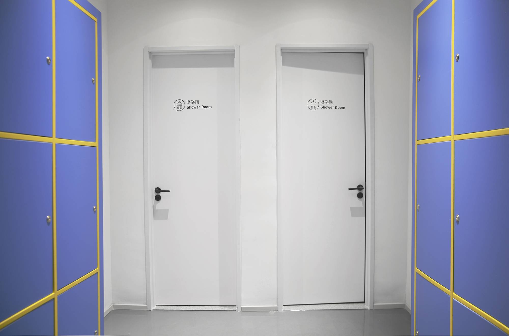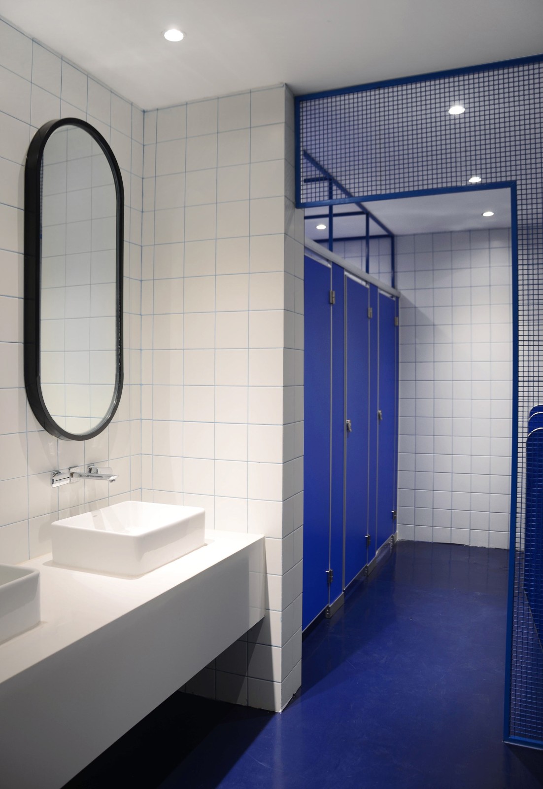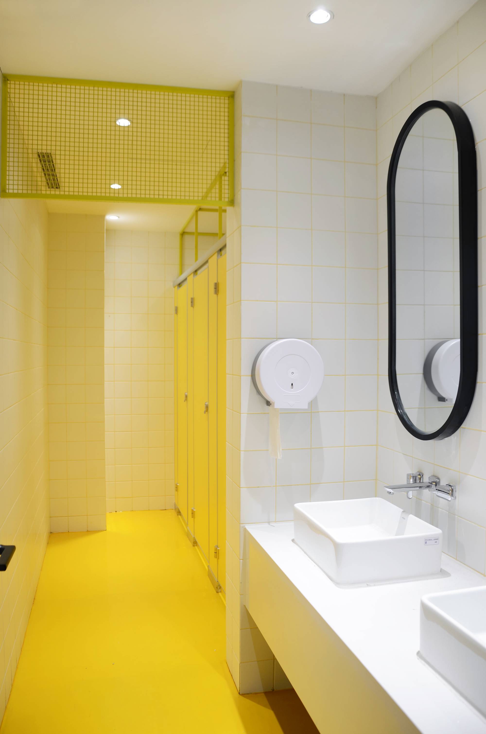 衛(wèi)生間使用顏色區(qū)分了男衛(wèi)女衛(wèi),明快的色調(diào)裝點空間和整體空間設(shè)計風(fēng)格和諧統(tǒng)一。