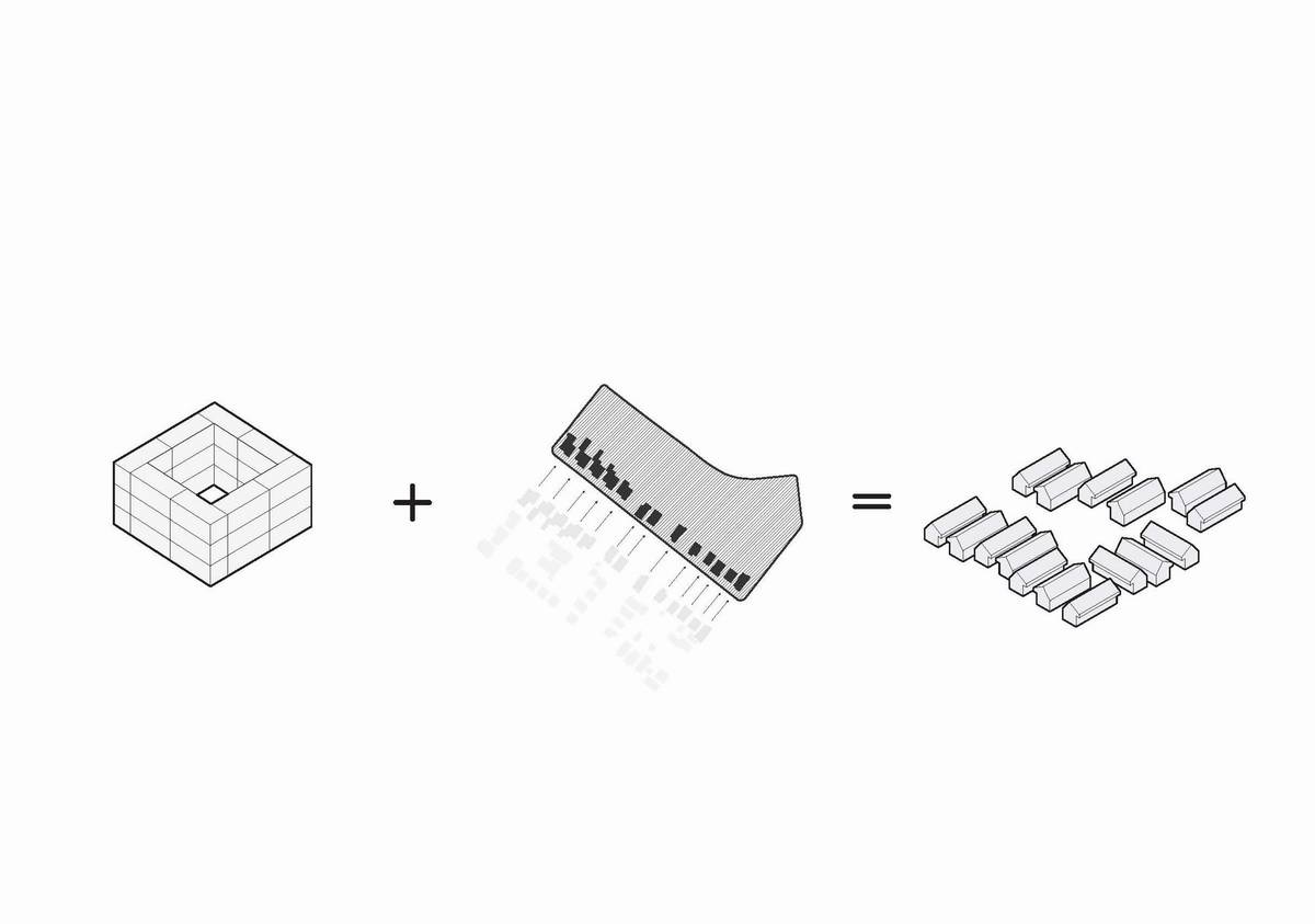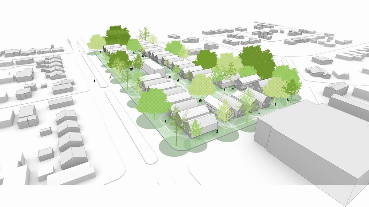 經(jīng)過十多年的空缺,Bastion選擇了該基地來建立他們的住房社區(qū),這個(gè)社區(qū)應(yīng)該是可擴(kuò)張的,有序的空間組織,既滿足功能需求,又融入周圍環(huán)境。最終建筑設(shè)計(jì)和場地設(shè)計(jì)經(jīng)濟(jì)、可持續(xù)且具有靈活性。雖然項(xiàng)目的形式可能看起來有點(diǎn)復(fù)雜,但項(xiàng)目的構(gòu)建邏輯源于單戶和雙戶住宅的基本模塊。樁支撐起住宅,使其懸浮在地面之上,為地下水滲透提供空間,同時(shí)確保古老的橡樹根系不受干擾。