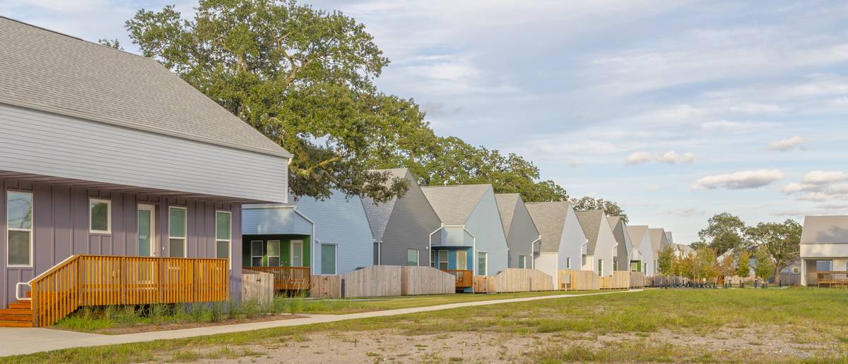 該項(xiàng)目位于路易斯安那州新奧爾良的 Gentilly 社區(qū),最初由戰(zhàn)后退伍軍人在郊區(qū)熱潮期間開發(fā),是歷史上一個(gè)繁榮的城市社區(qū),但它由于卡特里娜颶風(fēng)造成的洪水衰敗?;厥且粔K罕見的5.5英畝的連續(xù)地塊,直到洪水泛濫前都作為大型混合住宅區(qū)。距離倫敦運(yùn)河潰口幾百英尺(洪水的來源),故在前期必須清理剩余的殘骸。