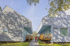 最近完成的 Bastion 社區(qū)是由58個(gè)獨(dú)立單元組成的保障住房項(xiàng)目,為經(jīng)歷過9·11的退伍軍人和他們的家人服務(wù),他們其中許多人需要接受終身治療?;诠餐纳罱?jīng)歷,Bastion 將他們集中起來,建立健康社區(qū)療養(yǎng)模式,以便長期護(hù)理。這是一種獨(dú)特的住房類型,開創(chuàng)了先河,旨在解決專業(yè)護(hù)理設(shè)施與普通住房之間的差距。