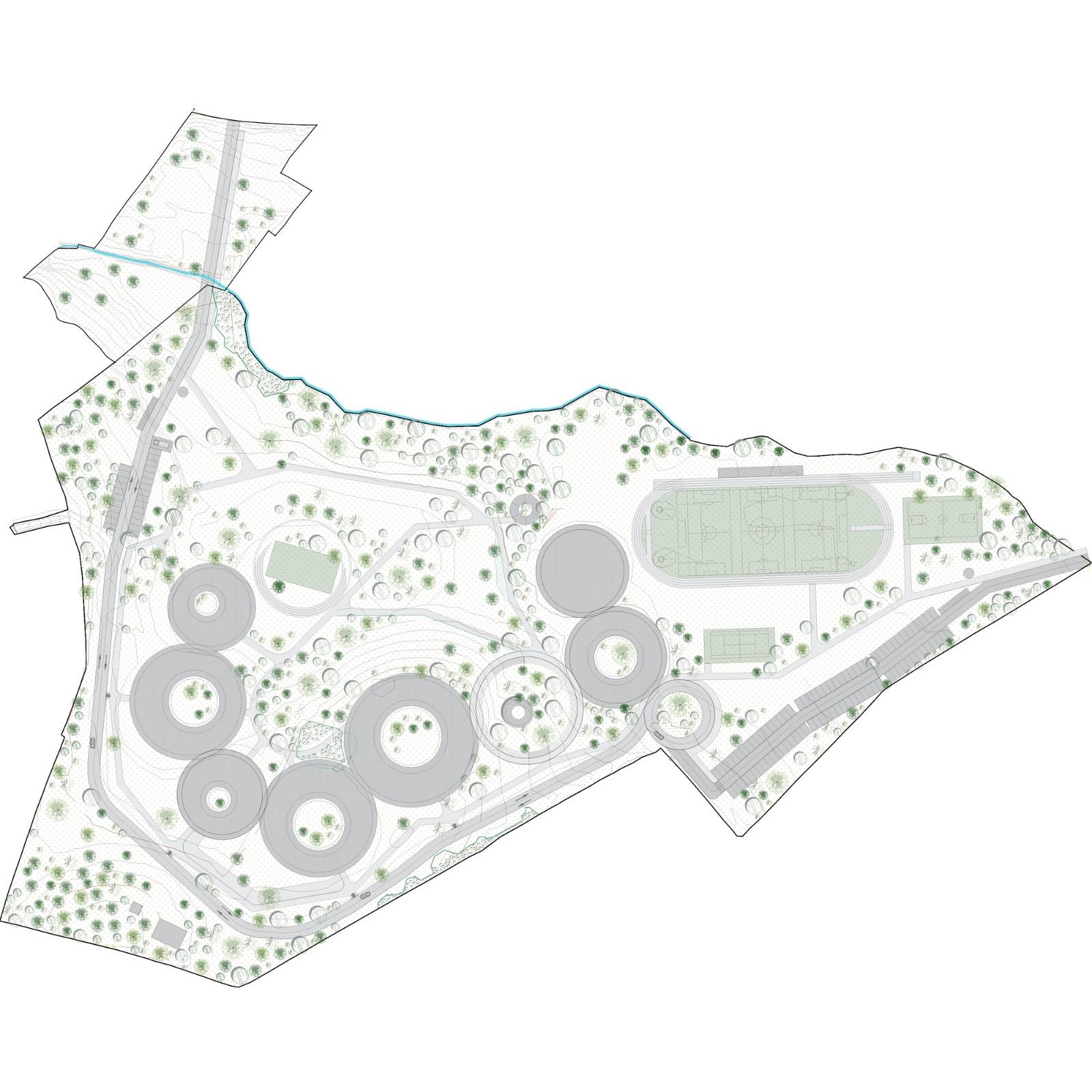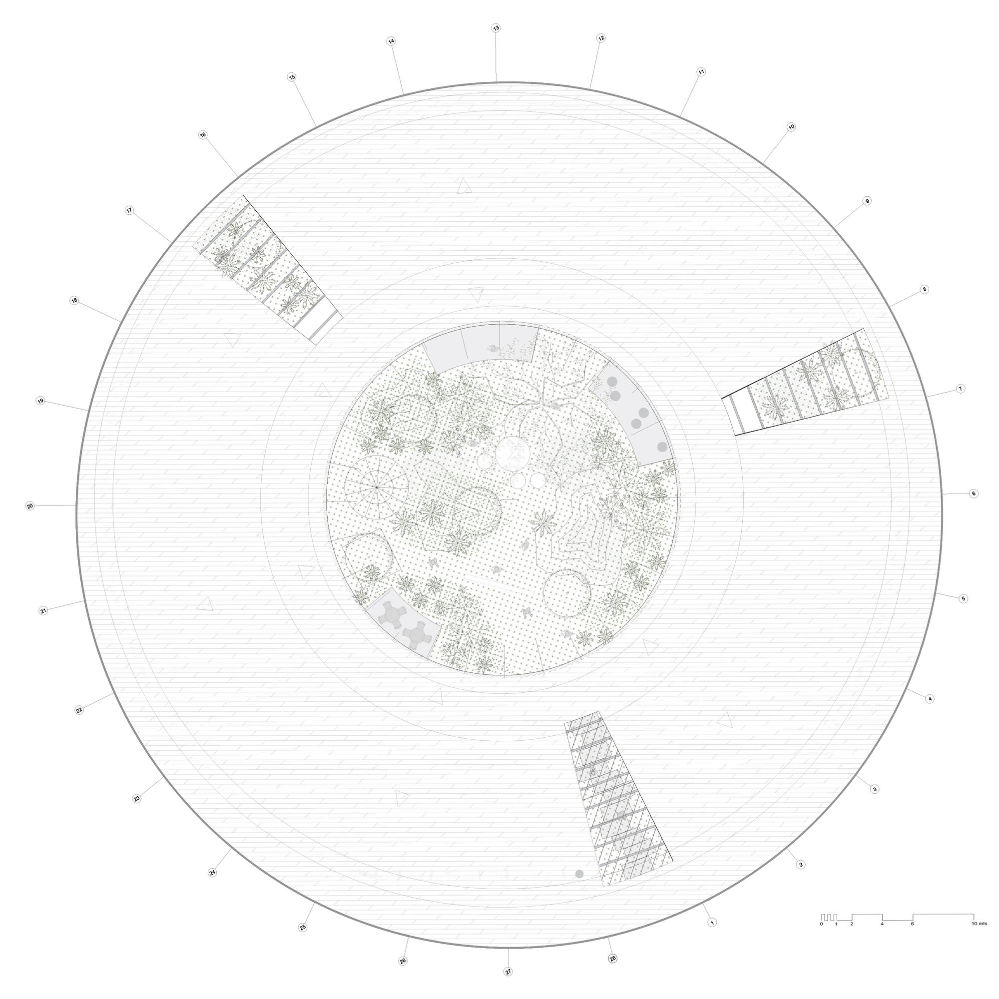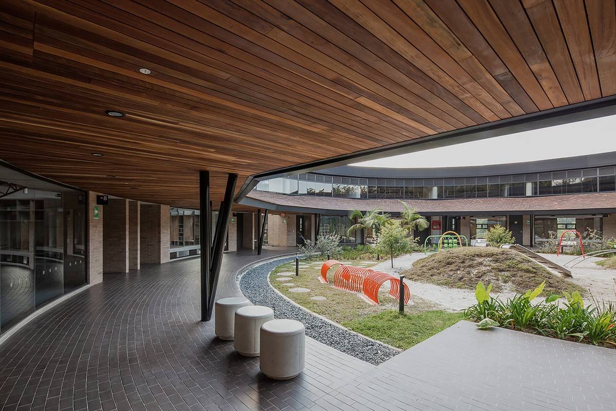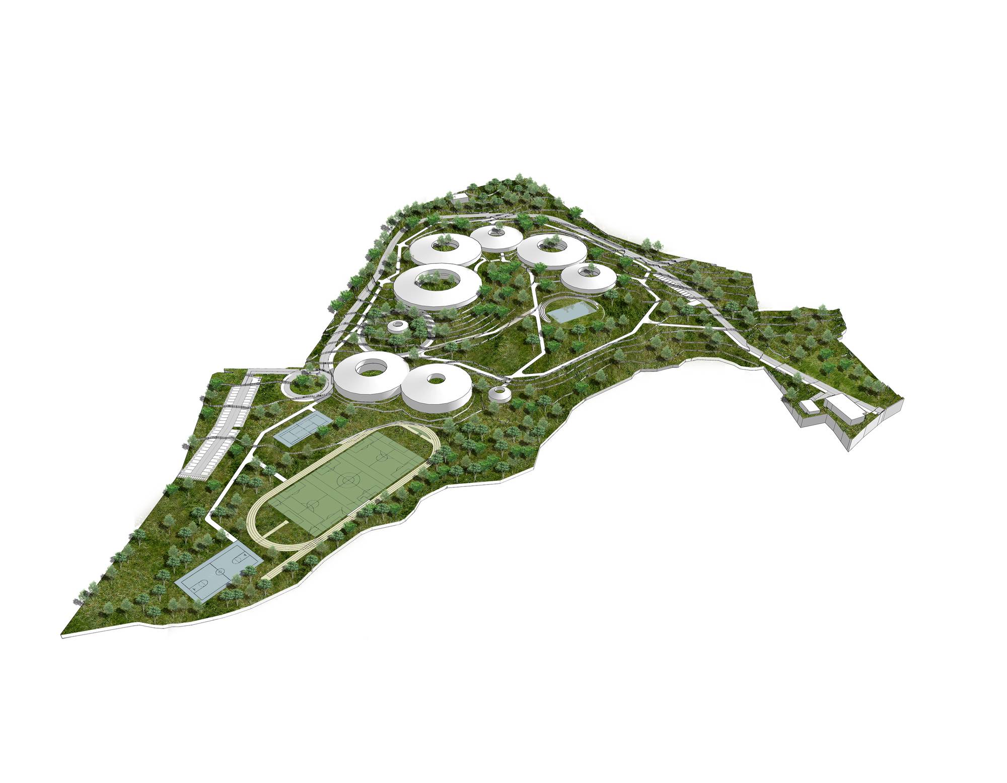 校園的整體規(guī)劃遵循基地的現(xiàn)有文脈,采用了圓形空間的設(shè)計(jì)思路。同時(shí),建筑師還給學(xué)生提供了各種尺度的教育空間,如小型平臺(tái)、中央廣場(chǎng)以及內(nèi)部花園。旨在強(qiáng)化他們與不同空間的聯(lián)系,并從中受益。