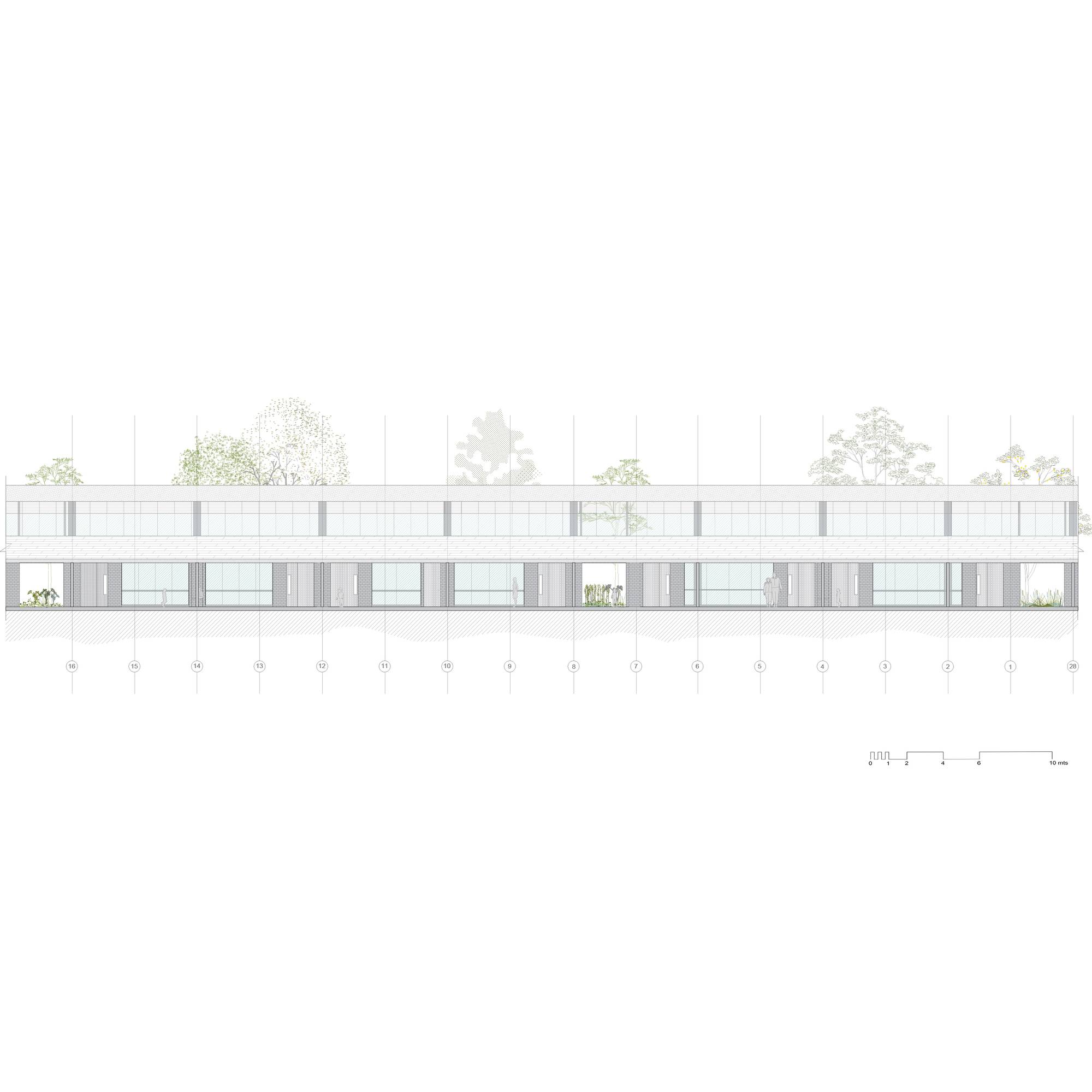 也就是說,每棟教學(xué)樓中心的庭院都可被用作一個(gè)多功能空間。這個(gè)空間不僅可以供課堂和休息所需,還可以作為各類活動(dòng)的舉辦場(chǎng)地。這個(gè)中心庭院除了給每棟教學(xué)樓定義主體功能外,還可以根據(jù)使用者的不同需求進(jìn)行調(diào)整改變。