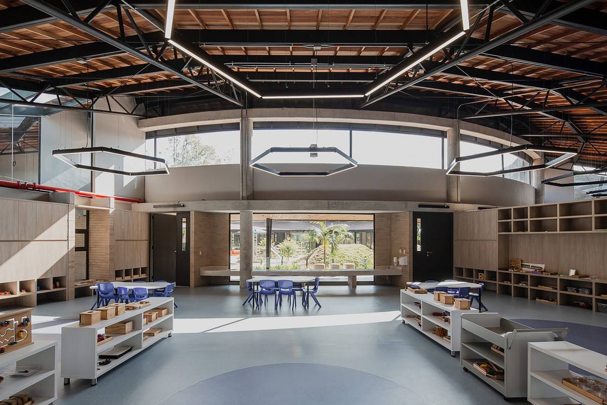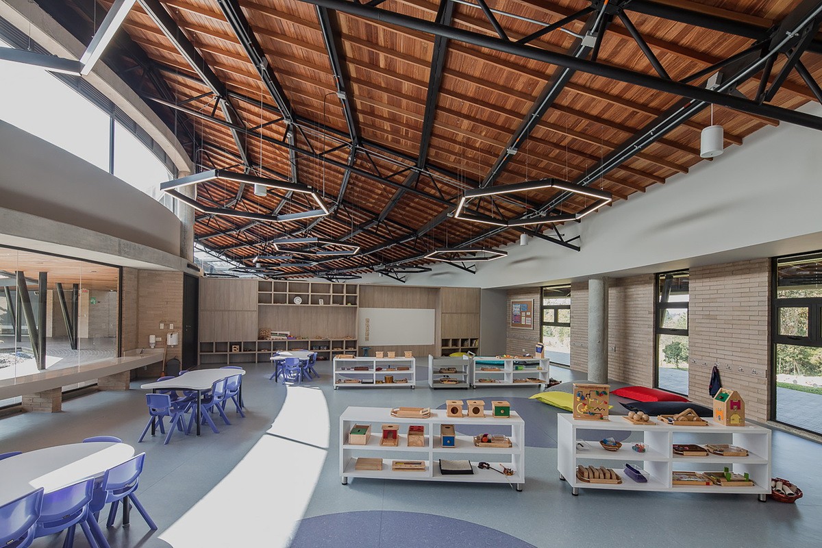 圓形的教育空間滿足了蒙特梭利教育法的空間所需。同時(shí),靈活多變的教育空間也有益于學(xué)生的性格培養(yǎng)和個(gè)人發(fā)展。這樣一來,校園內(nèi)的這些可變空間不光可以承擔(dān)連通空間的功能,還可以在需要時(shí)成為教學(xué)的候補(bǔ)空間。