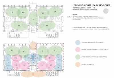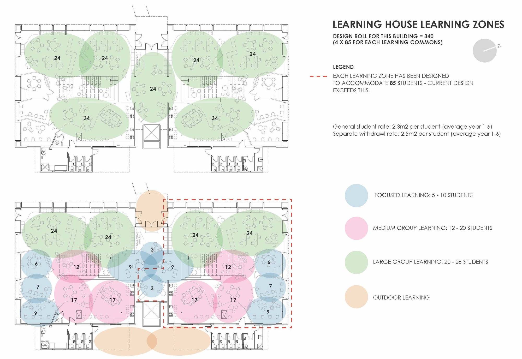 新的學(xué)習(xí)中心位于東側(cè),在行政樓的后側(cè),朝向西北。這座新的圖書(shū)館建筑位于西側(cè)大廳的后面,采用毛利族人中“大家庭”的概念。東北向有現(xiàn)存的學(xué)習(xí)大樓。這座建筑提供了先進(jìn)的“創(chuàng)新式學(xué)習(xí)環(huán)境”(80-90名小朋友在一個(gè)開(kāi)放空間布置的“教室”中學(xué)習(xí)),其提供了多種多樣的建筑材料和技藝。靈活的教學(xué)空間適合展開(kāi)多樣的教學(xué)活動(dòng),同時(shí)也適合多種科目與課程,既可以滿足學(xué)校需求又可以滿足社區(qū)群體的一些需求。