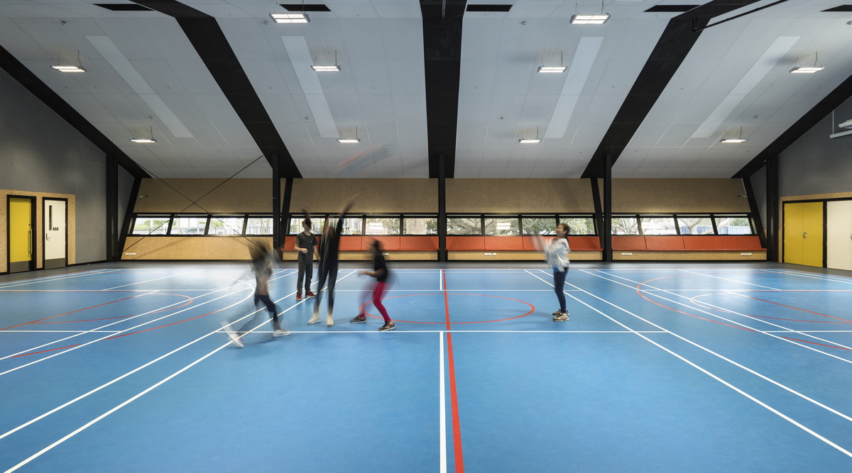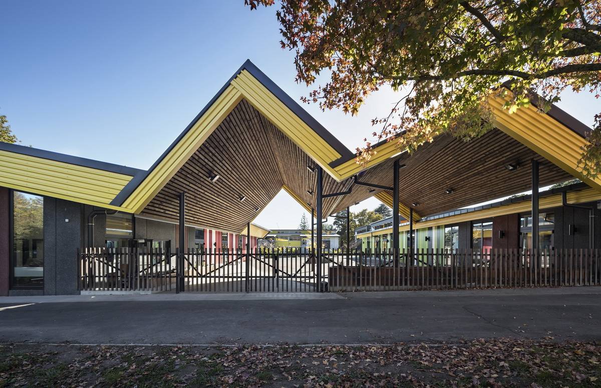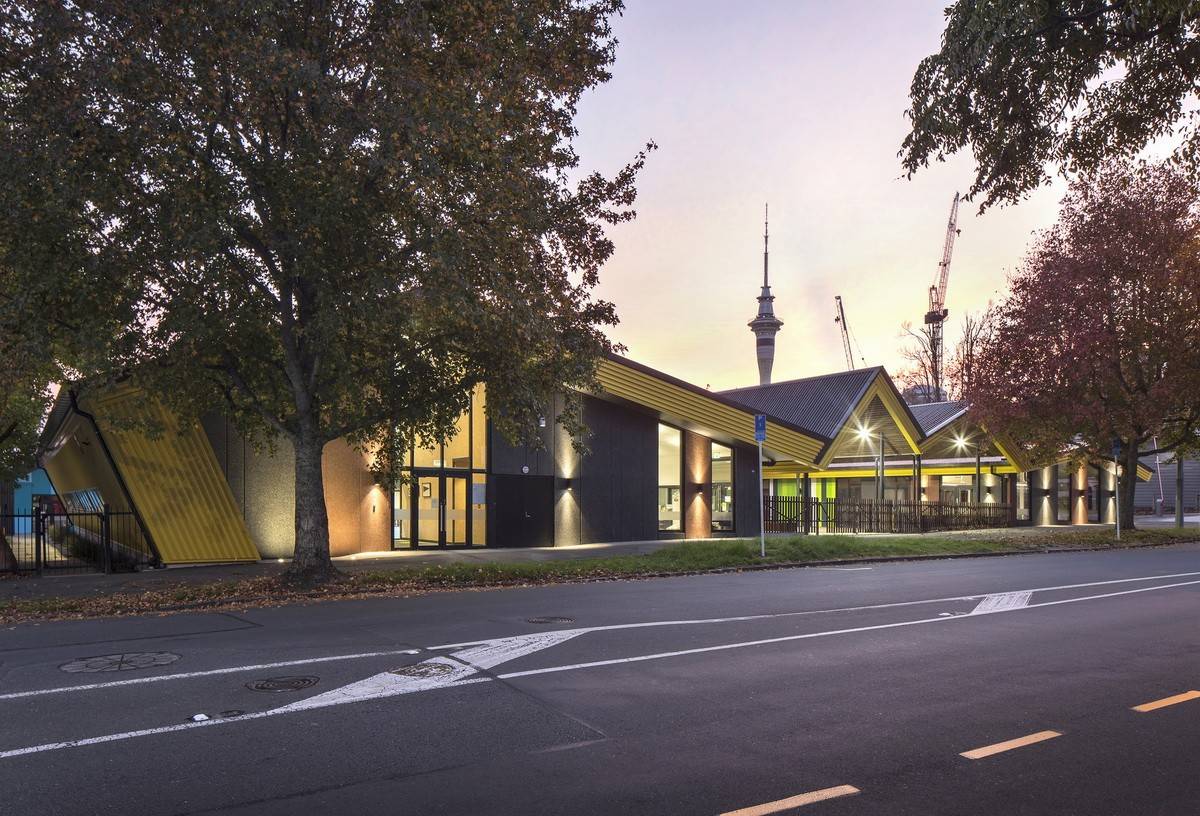 新的多功能大廳和管理中心面朝惠靈頓大街,連接著一個(gè)歡迎訪客進(jìn)入學(xué)校的入口雨蓬,其功能是作為潛在的室外教學(xué)空間以及覆蓋頂?shù)耐嫠^(qū)域。脊線傳達(dá)了傳統(tǒng)的毛利建筑形式,同時(shí)可表現(xiàn)了多種周邊街區(qū)典型的聯(lián)排公寓和城鎮(zhèn)房屋的屋頂形式。