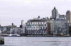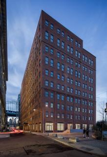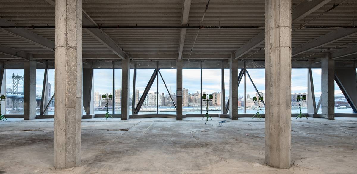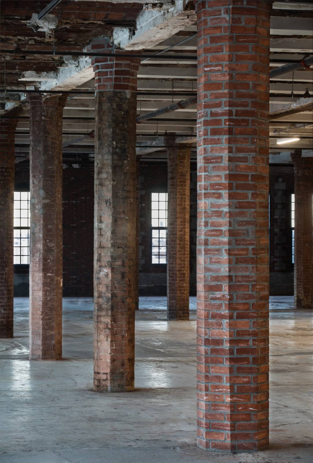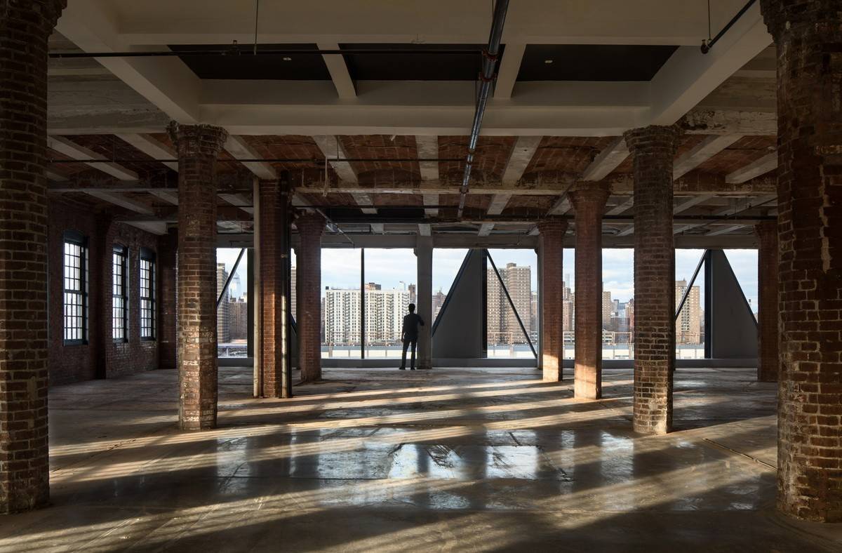 這里曾是 Arbuckle Brothers 煉糖廠,它的歷史可追溯至1898年,最初由 George M. Newhall 工程公司設(shè)計(jì),其巨大的體量直接與河水相連,以供船只交付貨品及服務(wù)時(shí)??俊?925年,它又被改建為酒廠。在這之后不到十年的時(shí)間里,該建筑的正面被拆除,其余三面原始外立面以及一面面朝東河岸的隔墻得以保留。此后,該建筑被空置,并任其處于失修狀態(tài)長(zhǎng)達(dá)50年,直至1991年被家族企業(yè) Triangle Assets 買下。