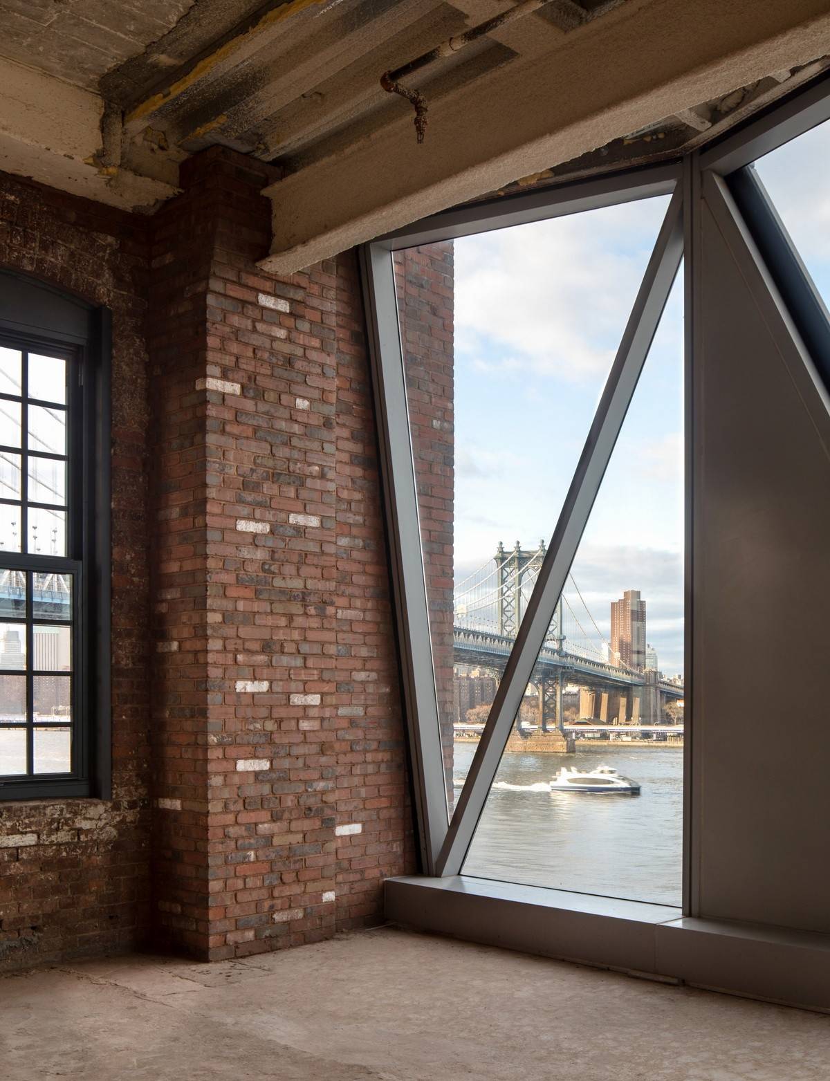 該建筑的擁有者曾向布魯克林大橋公園捐贈(zèng)了近1400平方米的土地,如今已被規(guī)整為人行道和草坪。起初,Stavrach 計(jì)劃將原建筑改建為公寓,但當(dāng)其看到 ODA 為該建筑所做的標(biāo)志性設(shè)計(jì)后,出售的念頭便被拋諸腦后。“這樣的設(shè)計(jì)使我們愛上了這座歷史建筑,所以,我們無(wú)法將其出售?!敝螅O(shè)計(jì)師和開發(fā)商開始重新策劃,與紐約房產(chǎn)開發(fā)市政局 HPC、樓宇局 DOB、地標(biāo)建筑保護(hù)委員會(huì) LPC 一起,將原規(guī)劃方案改為商業(yè)租賃。Triangle Assets 要求 ODA 在構(gòu)想時(shí),需考慮建筑的商業(yè)租戶,以及更大的商業(yè)可能性?!皩?duì)我們來說,我們的建筑被公園環(huán)繞著,這一點(diǎn)很重要。作為布魯克林大橋公園中唯一的私有建筑(其余所有的河岸建筑持有99年租約),我們想要明確地表達(dá),我們可以屹立于此,直至未來。無(wú)論是在陸地還是海上,從任何方位都能看到這棟大樓,毫無(wú)疑問,它就是 DUMBO 區(qū)王冠上的明珠?!?/p>