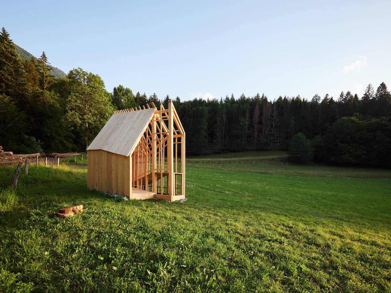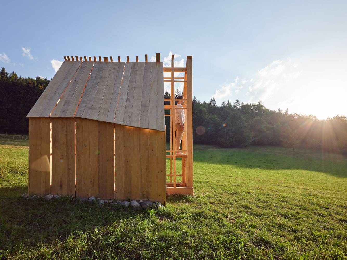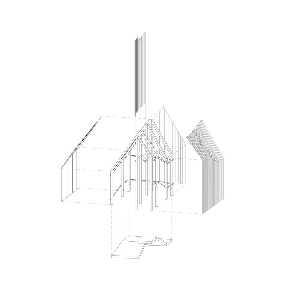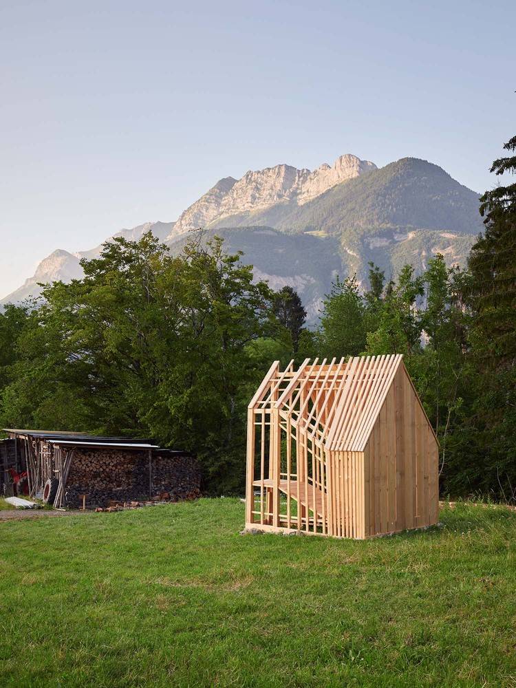 JCPCDR Architecture 在一個小木屋設(shè)計的國際比賽中勝出,在法國安妮西湖中心建立一個臨時小木屋:需要使用當?shù)啬静囊约巴耆山ㄖ熢诂F(xiàn)場搭建而成。坐落在樹下,在樹林之間的空地,這個木質(zhì)觀望臺通過當代建筑的棱鏡形態(tài),為周圍的荒野提供了一個觀察視角。