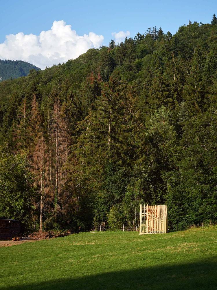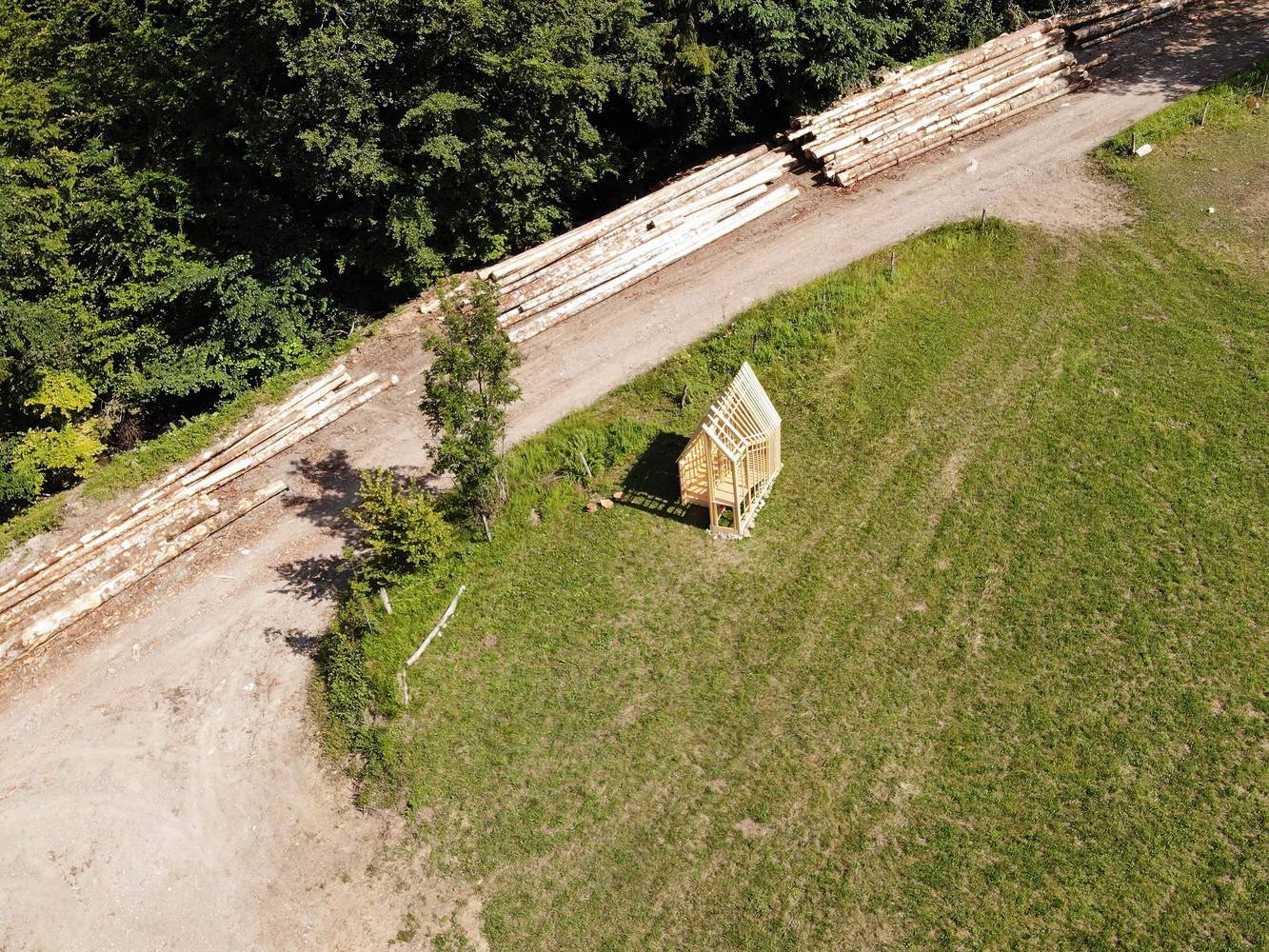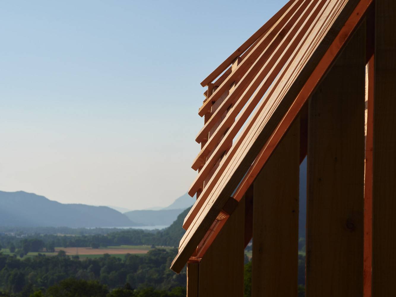 JCPCDR Architecture 在一個小木屋設(shè)計的國際比賽中勝出,在法國安妮西湖中心建立一個臨時小木屋:需要使用當?shù)啬静囊约巴耆山ㄖ熢诂F(xiàn)場搭建而成。坐落在樹下,在樹林之間的空地,這個木質(zhì)觀望臺通過當代建筑的棱鏡形態(tài),為周圍的荒野提供了一個觀察視角。