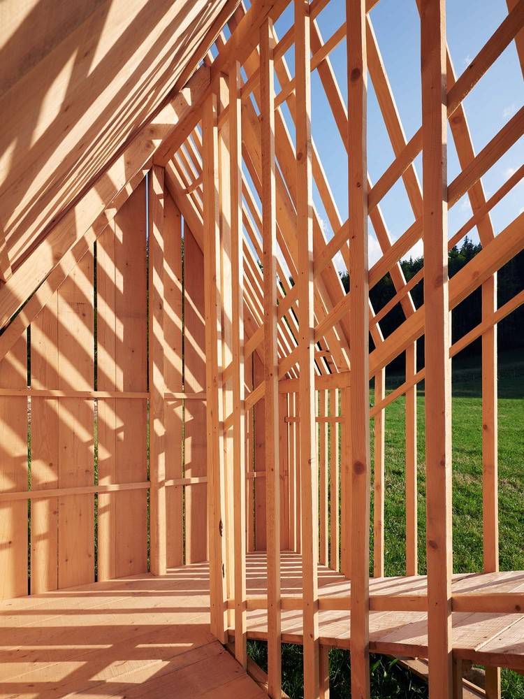 整個季節(jié),這個當代建筑產(chǎn)物成為了其環(huán)境的展示,結(jié)合成一個完整的體驗。觀望臺的結(jié)構(gòu)完全由冷杉木構(gòu)成,簡單又巧妙。其設(shè)計青睞直接和連續(xù)的線條,以突出木材的精髓并且得到一種優(yōu)美的風(fēng)格,毫不妥協(xié),補充了圍繞在周圍的足夠的植被。這種簡單的線條也確保了建造時的完美質(zhì)量。